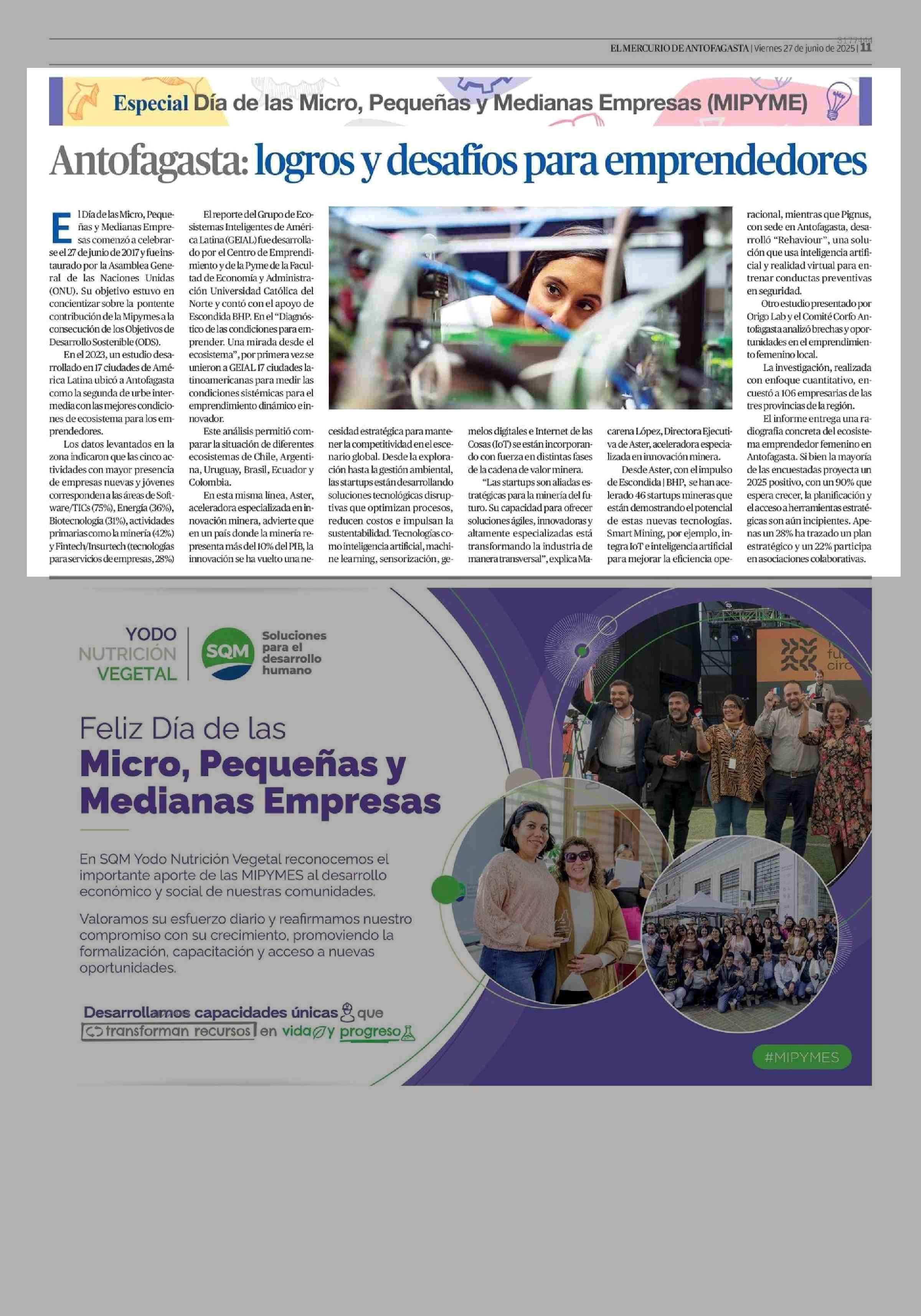 Antofagasta: logros y desafios para emprendedores 27-06-2025 El Mercurio de Antofagasta |