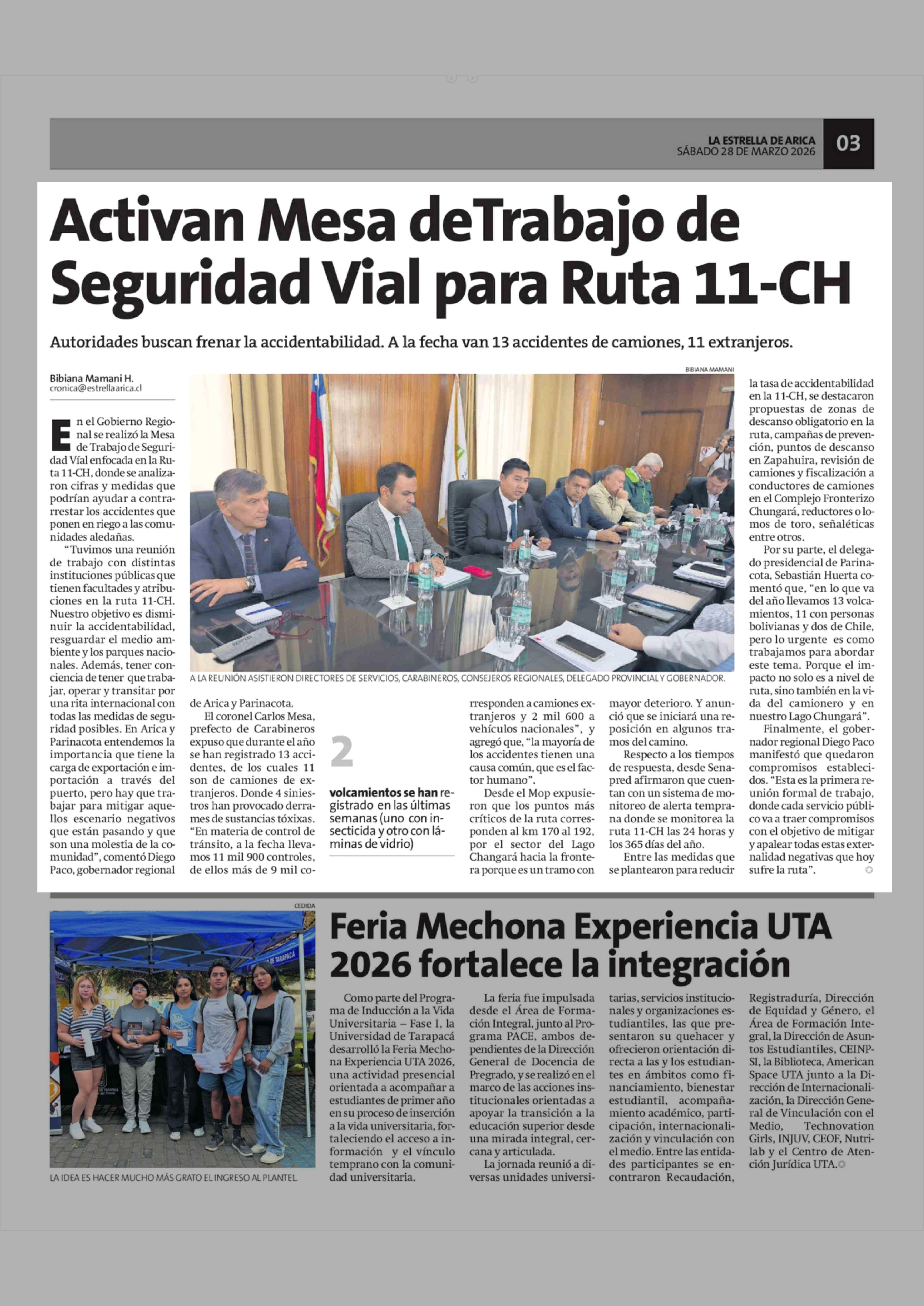 Fecha: 28-03-2026 Sector: Noticia general Región: Región de Arica y Parinacota