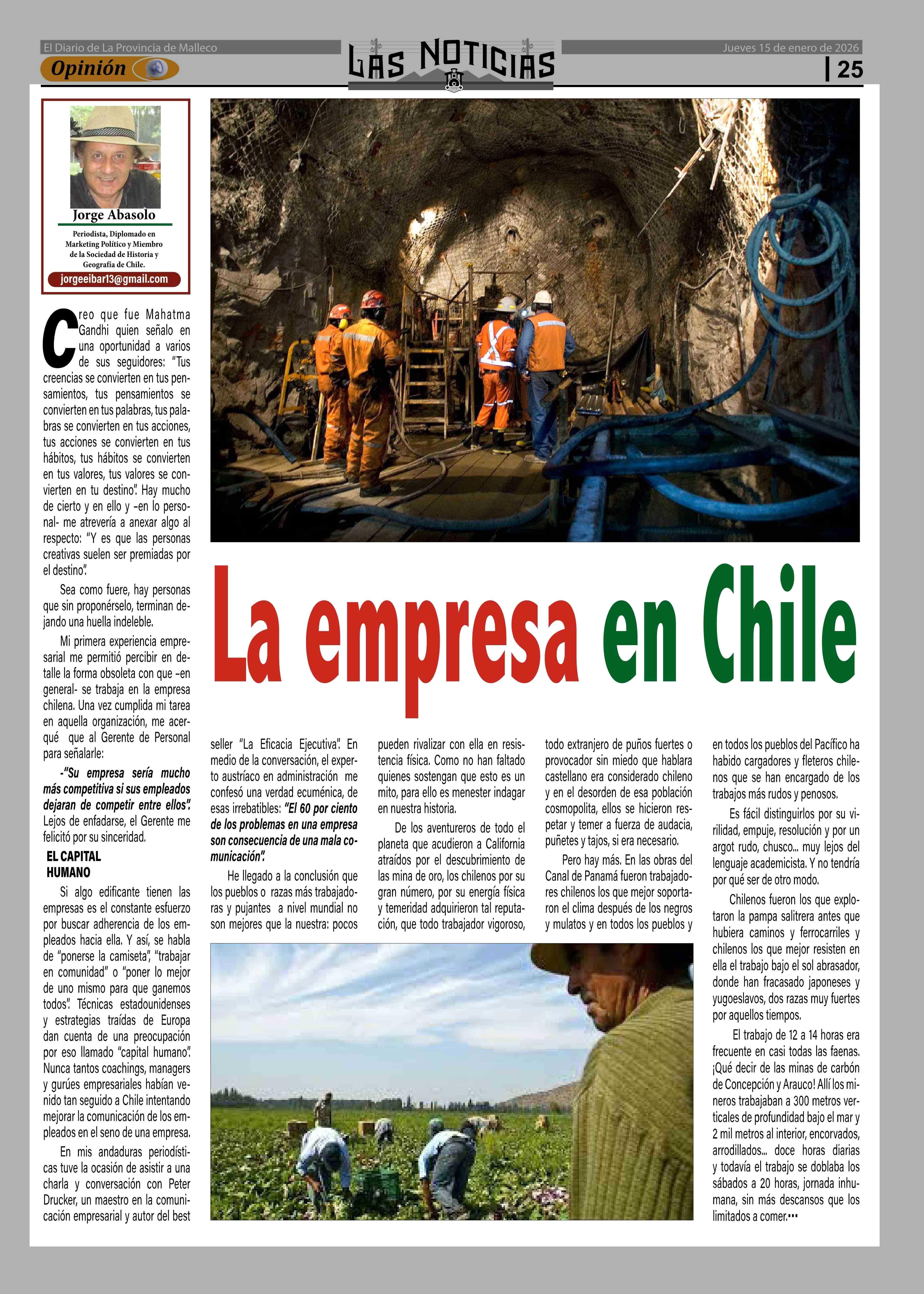 Columnas de Opinión: La empresa en Chile 15-01-2026 Las Noticias |