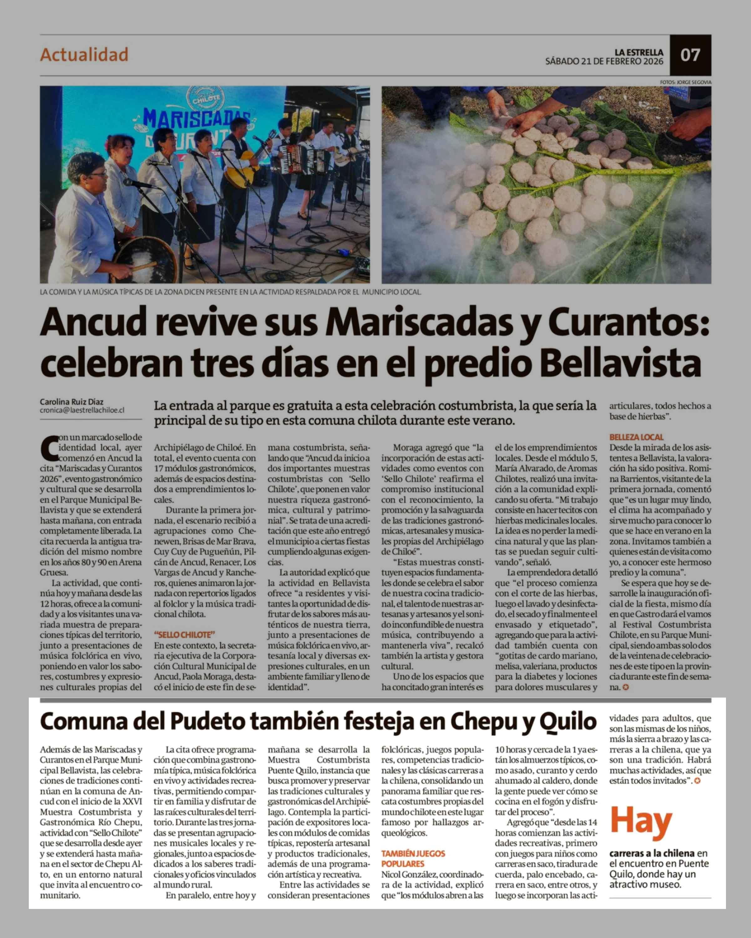 Comuna del Pudeto también festeja en Chepu y Quilo 21-02-2026 La Estrella de Chiloé |