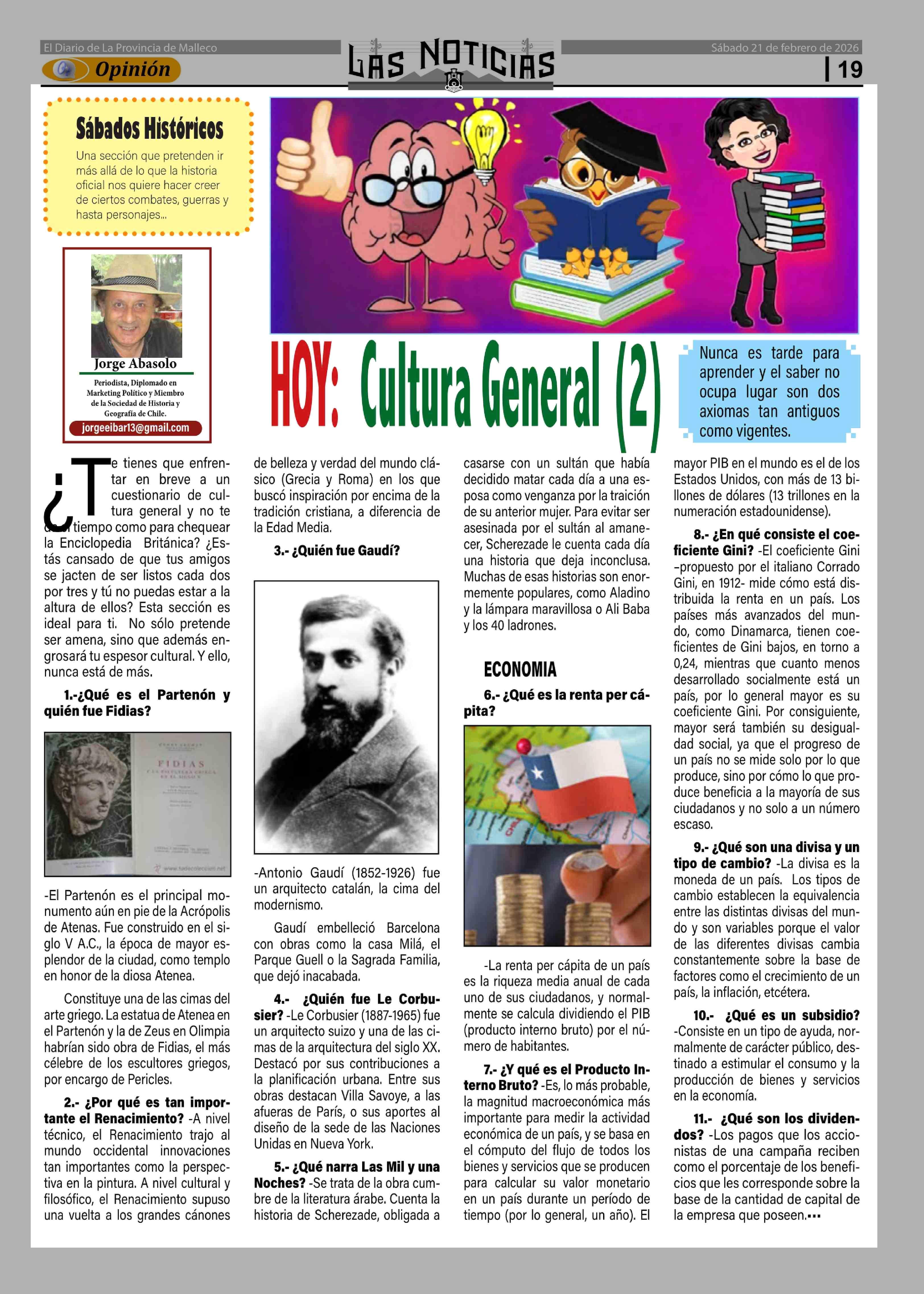Columnas de Opinión: HOY: Cultura General (2 21-02-2026 Las Noticias |
