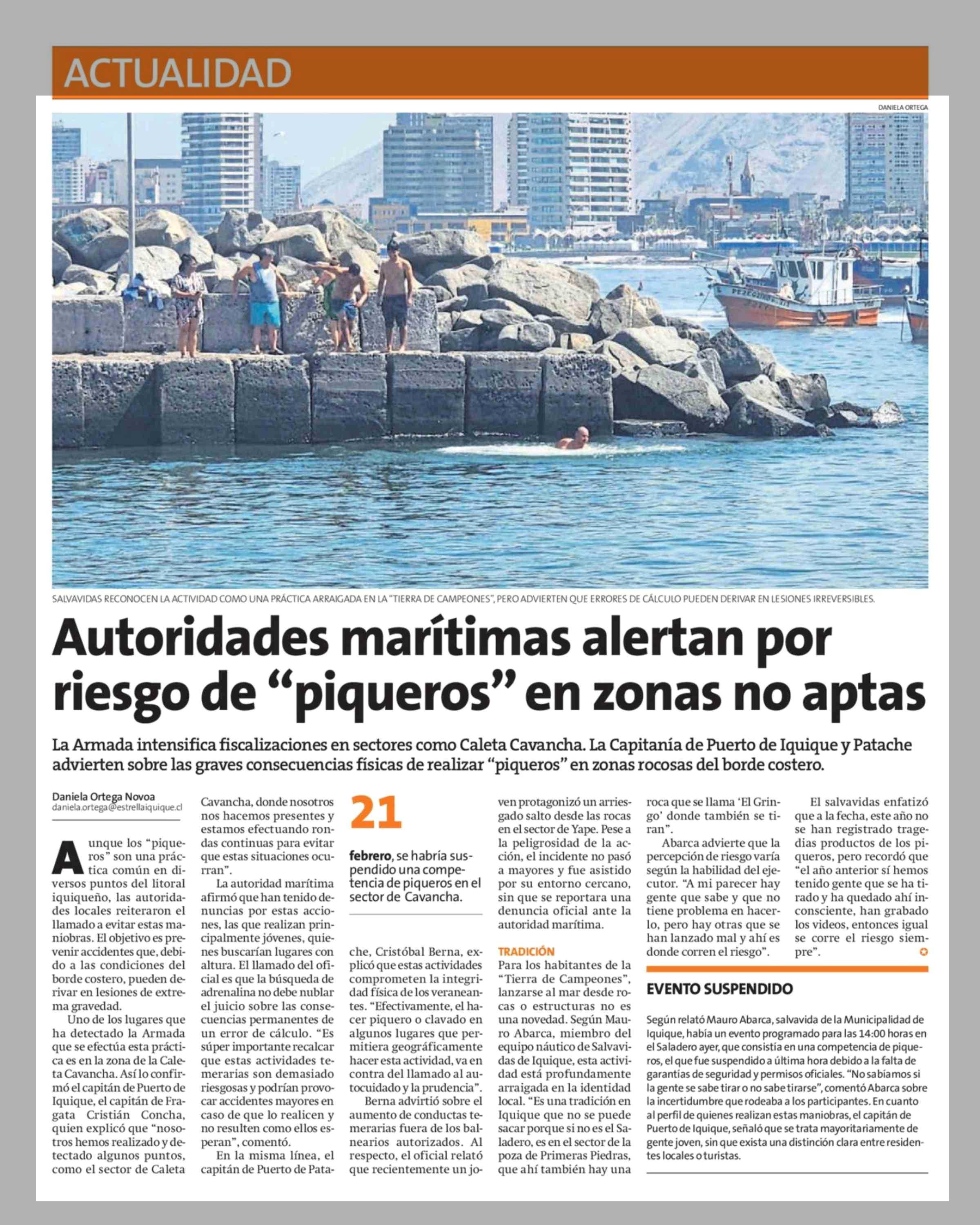 Título: Autoridades marítimas alertan por riesgo de "piqueros" en zonas no aptas