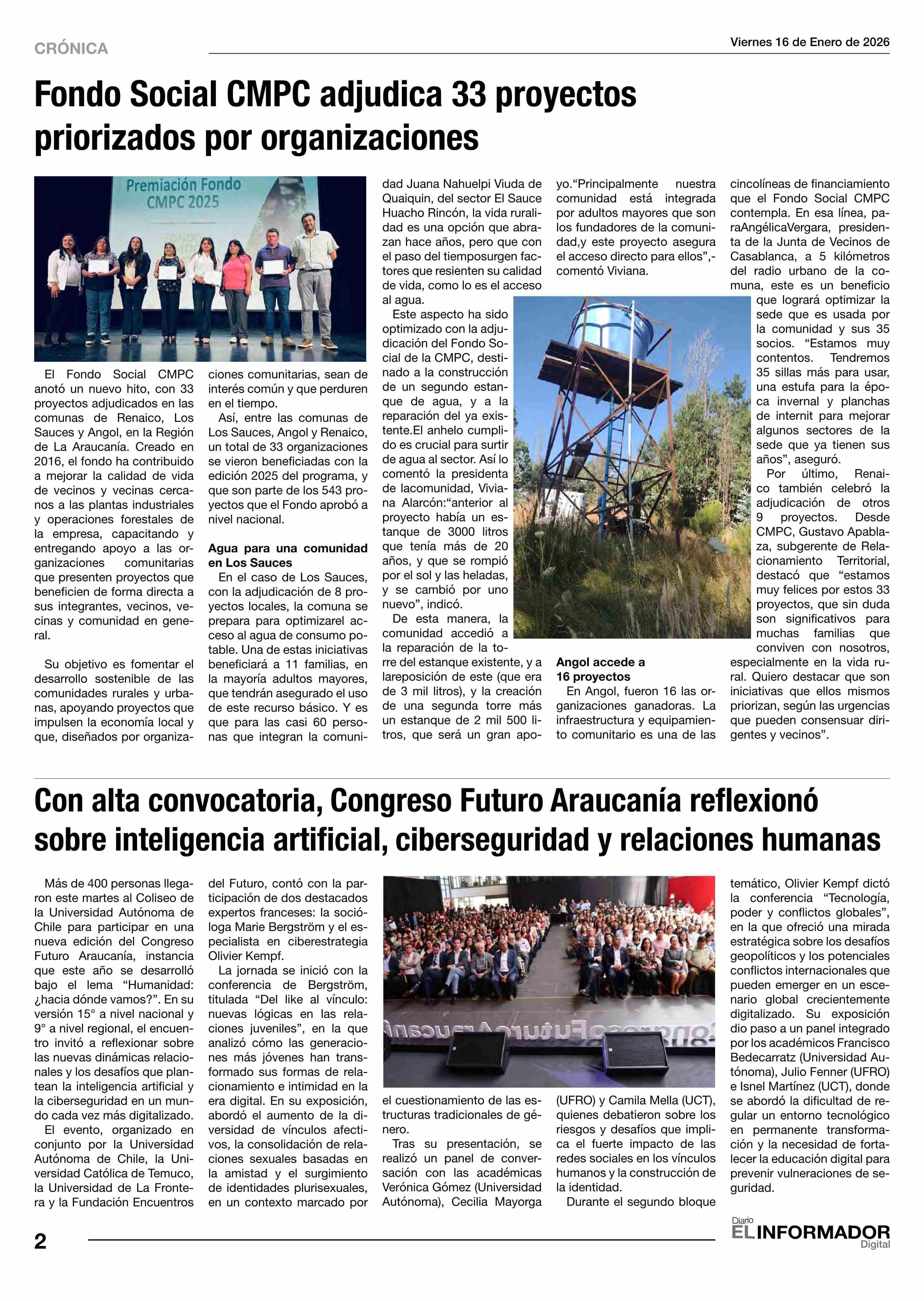 Fecha: 16-01-2026 Sector: Noticia general Región: Región de la Araucanía