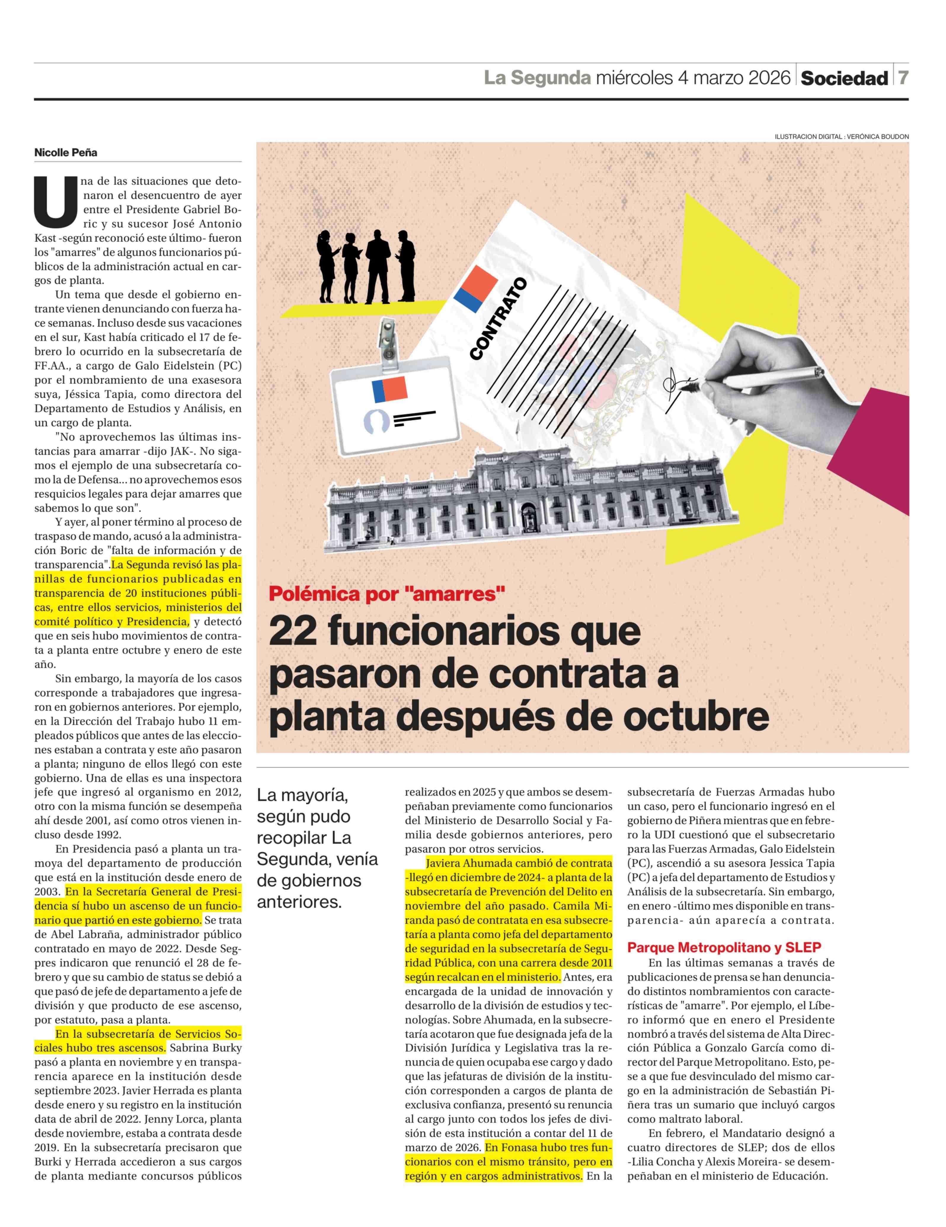 22 Funcionarios que pasaron de contrata a planta después de octubre 04-03-2026 La Segunda |