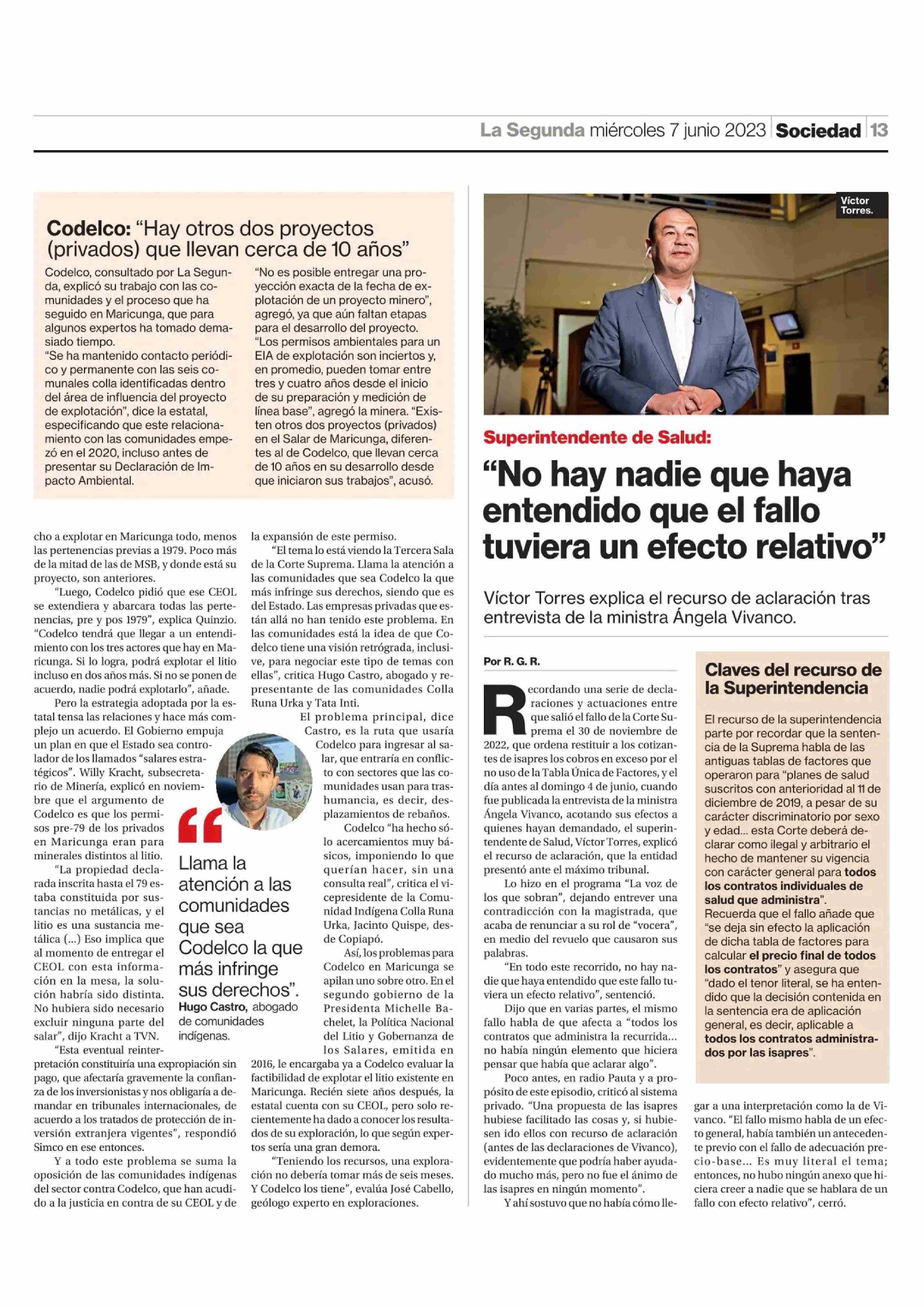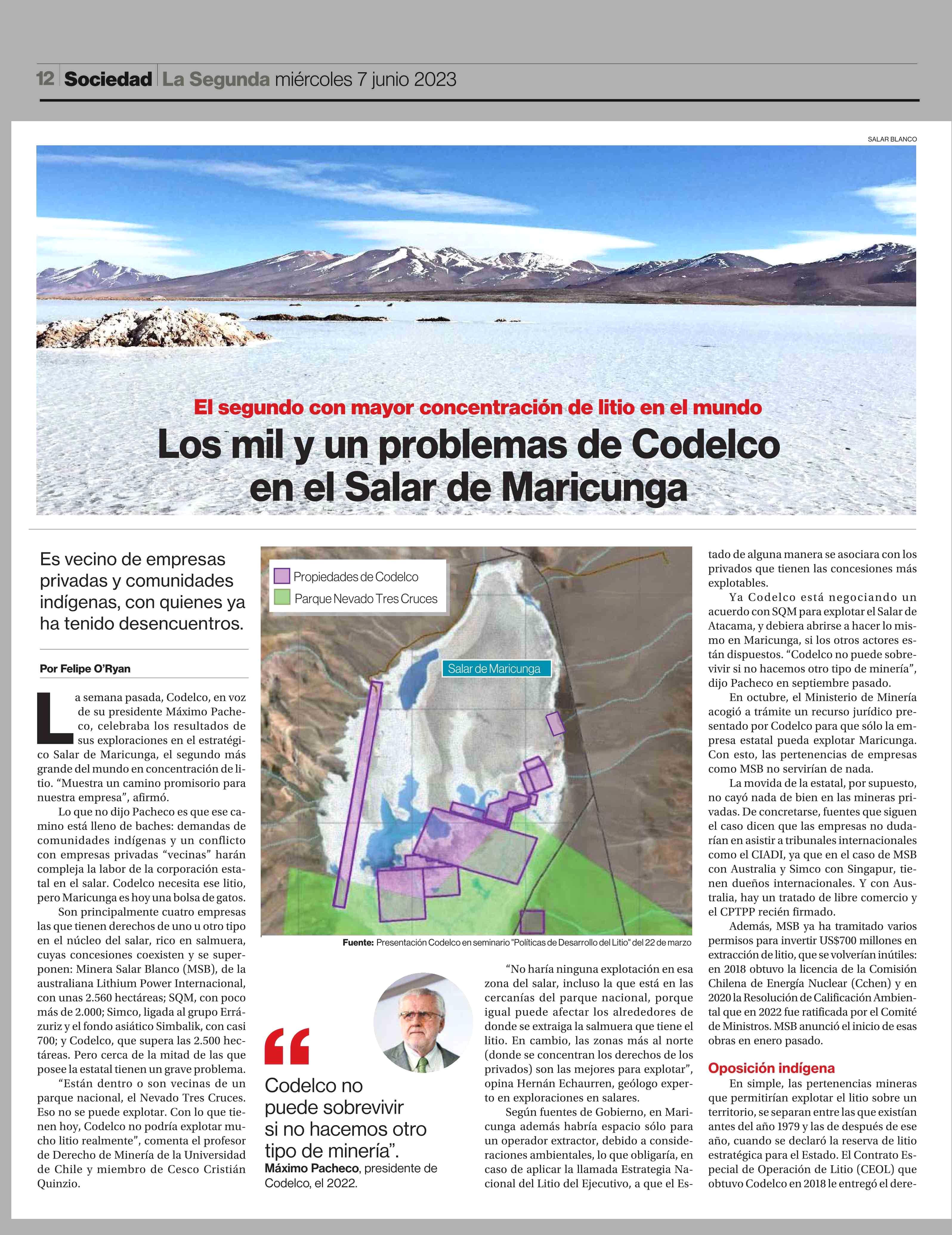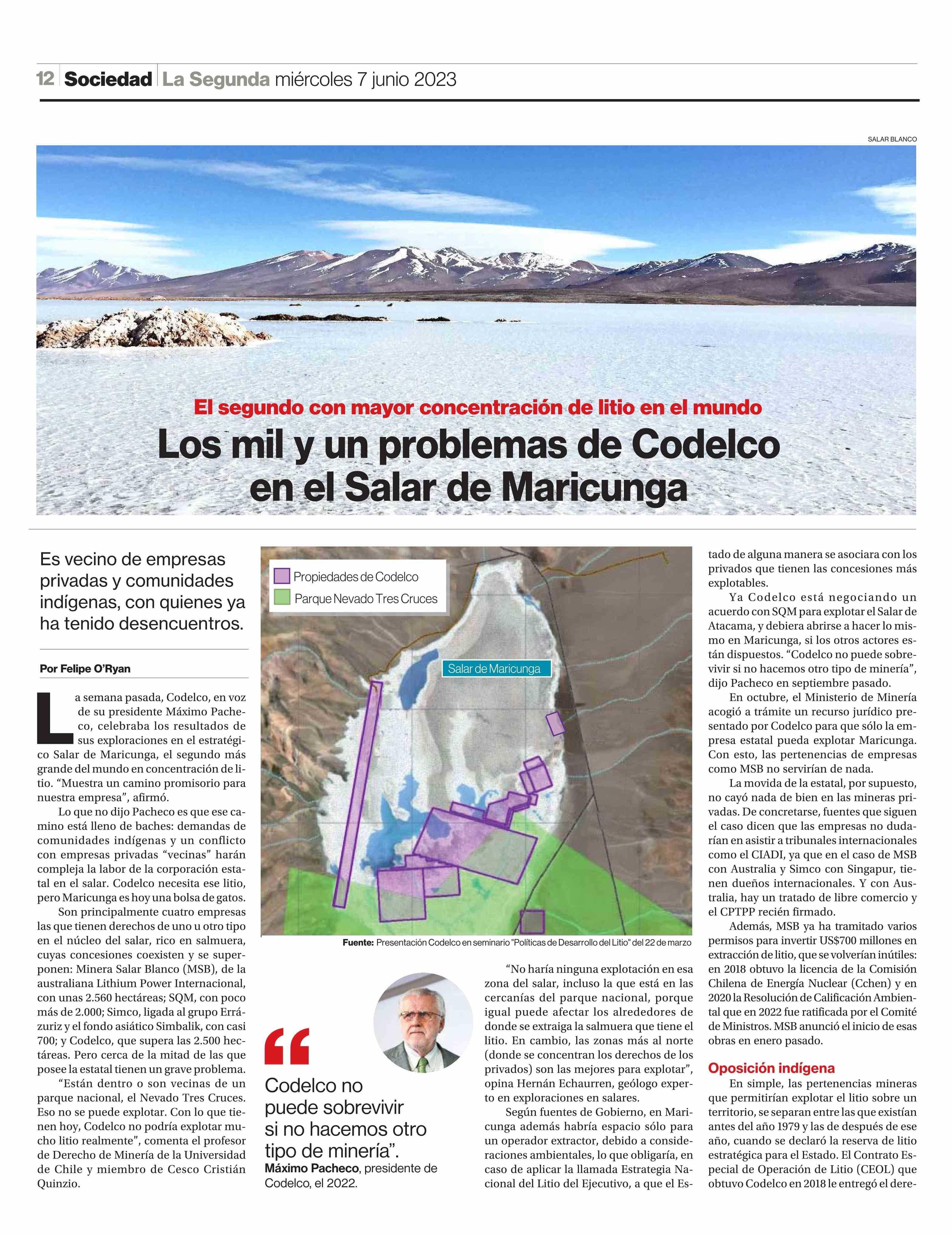 Los mil y un problemas de Codelco en el Salar de Maricunga 07-06-2023 La Segunda |