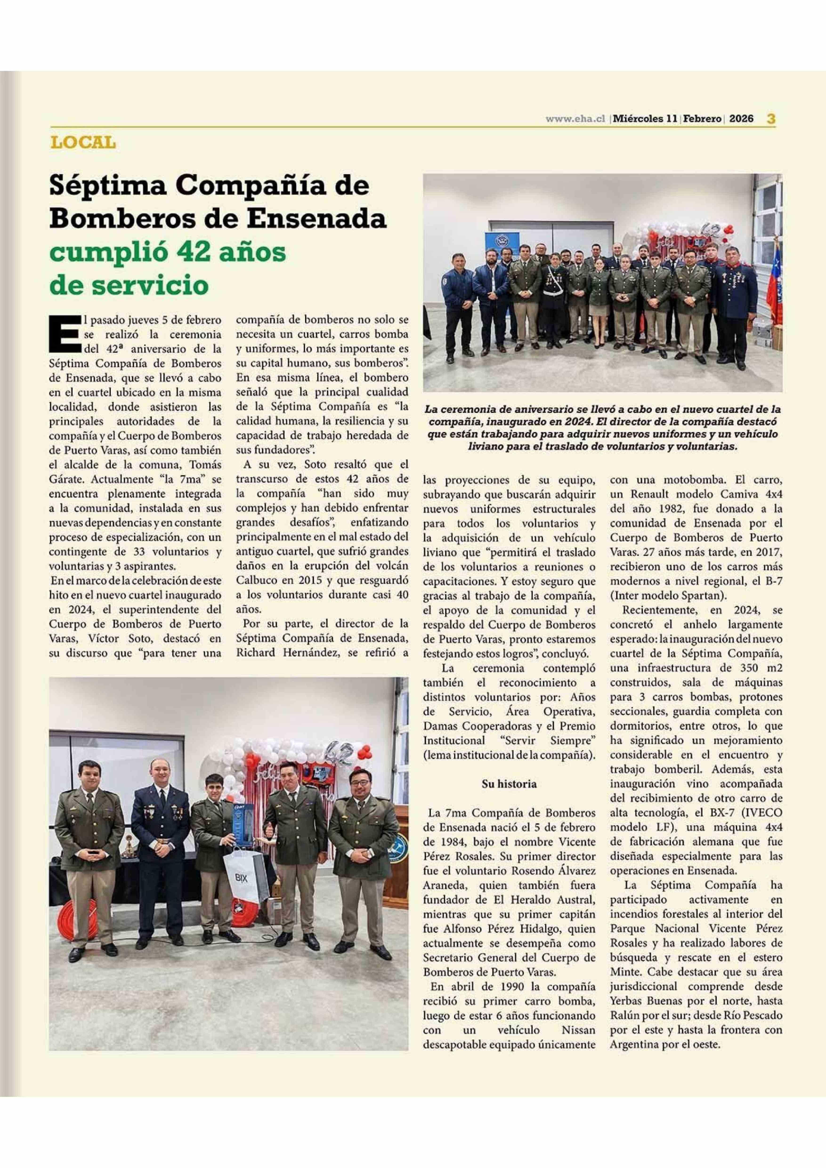 Séptima Compañía de Bomberos de Ensenada cumplió 42 años de servicio 11-02-2026 El Heraldo Austral |