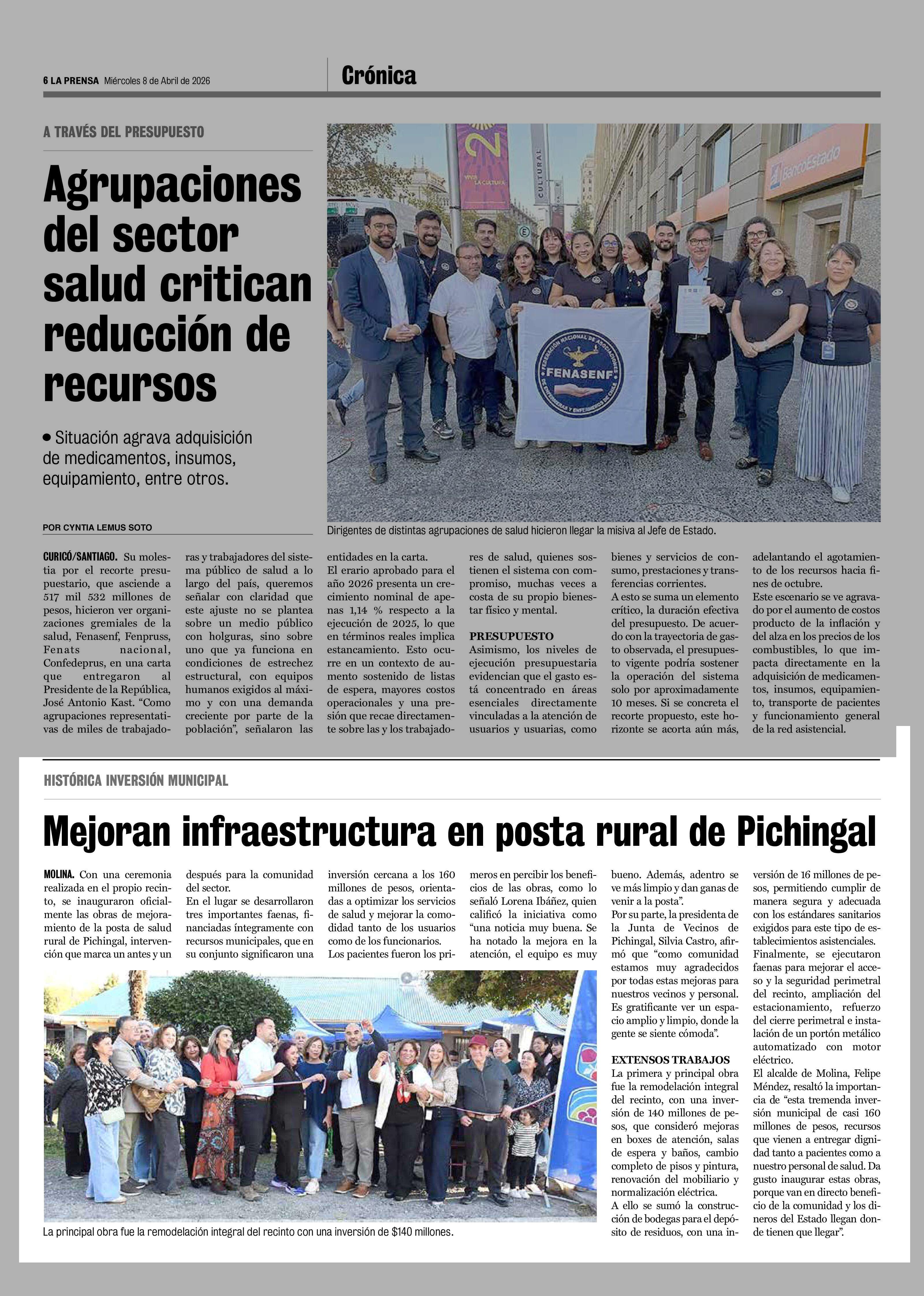 Mejoran infraestructura en posta rural de Pichingal 08-04-2026 La Prensa de Curicó |