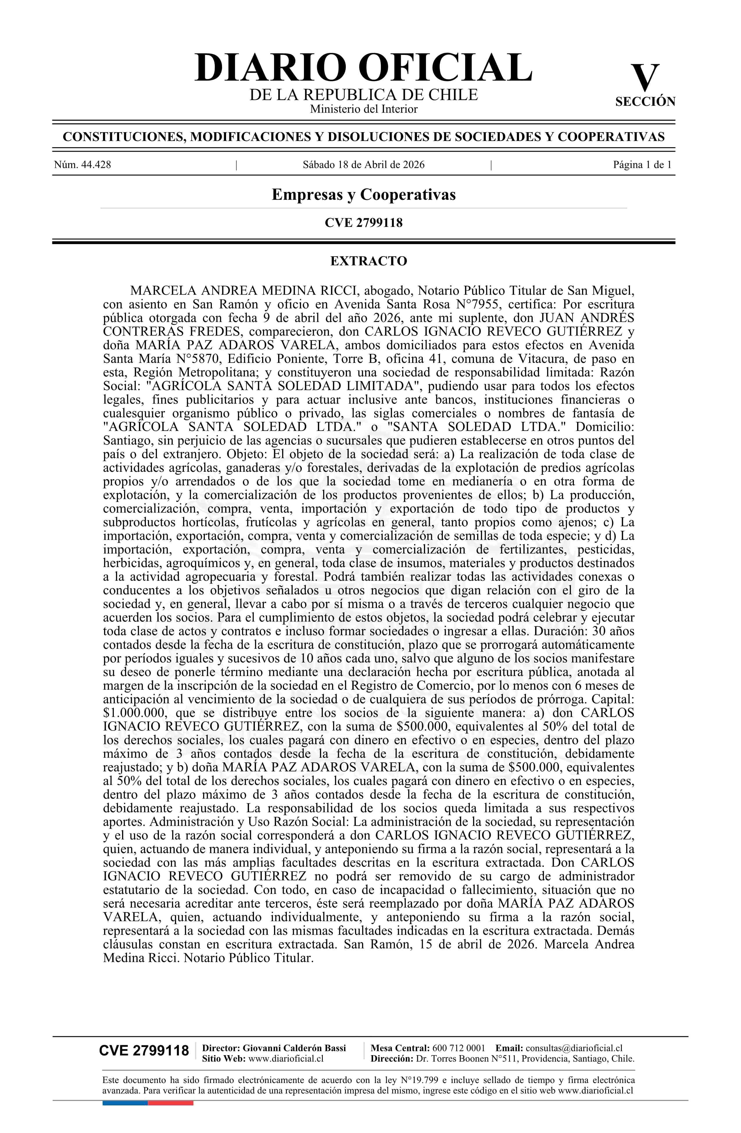 Título: AGRÍCOLA SANTA SOLEDAD LIMITADA