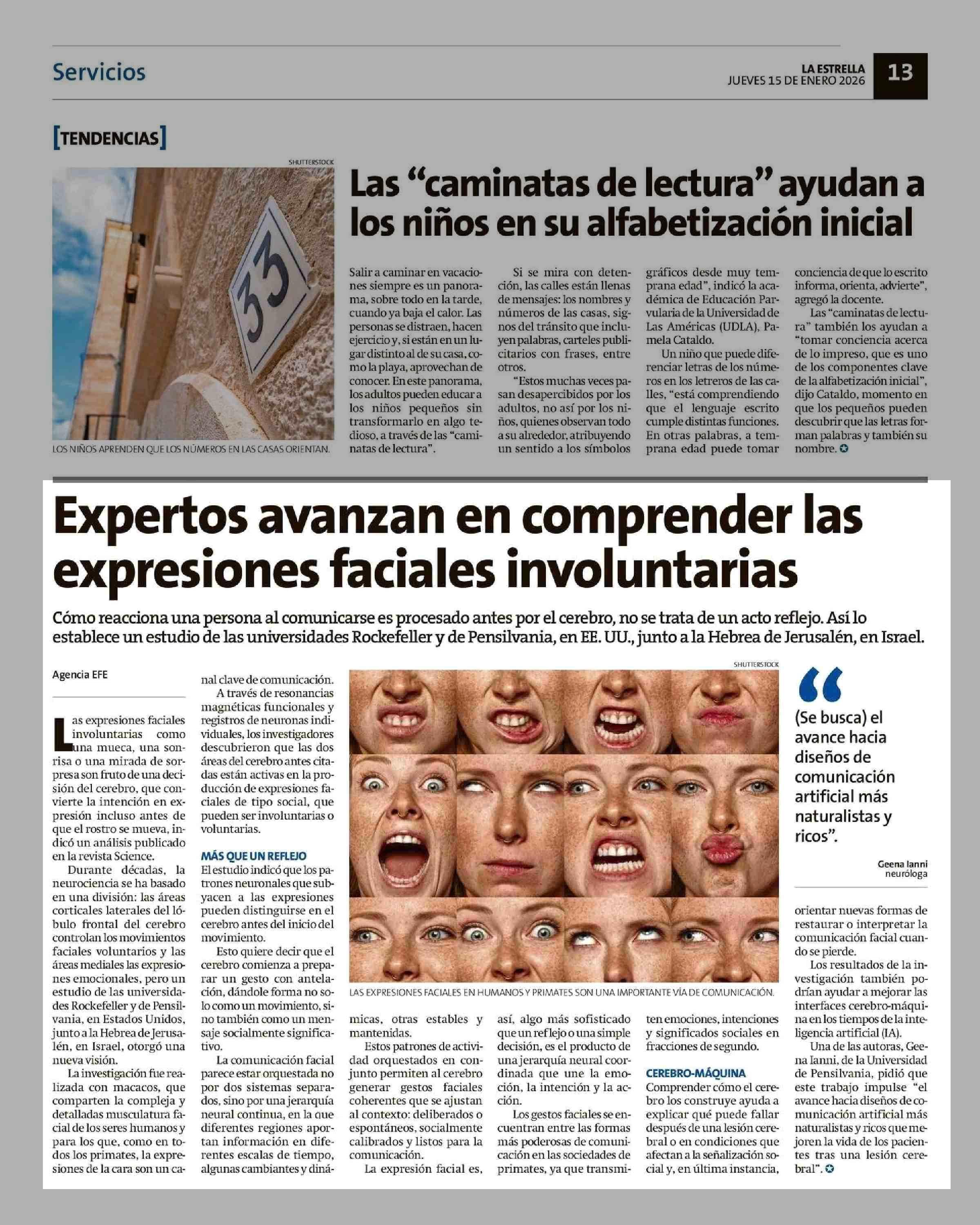 Expertos avanzan en comprender las expresiones faciales involuntarias 15-01-2026 La Estrella de Chiloé |
