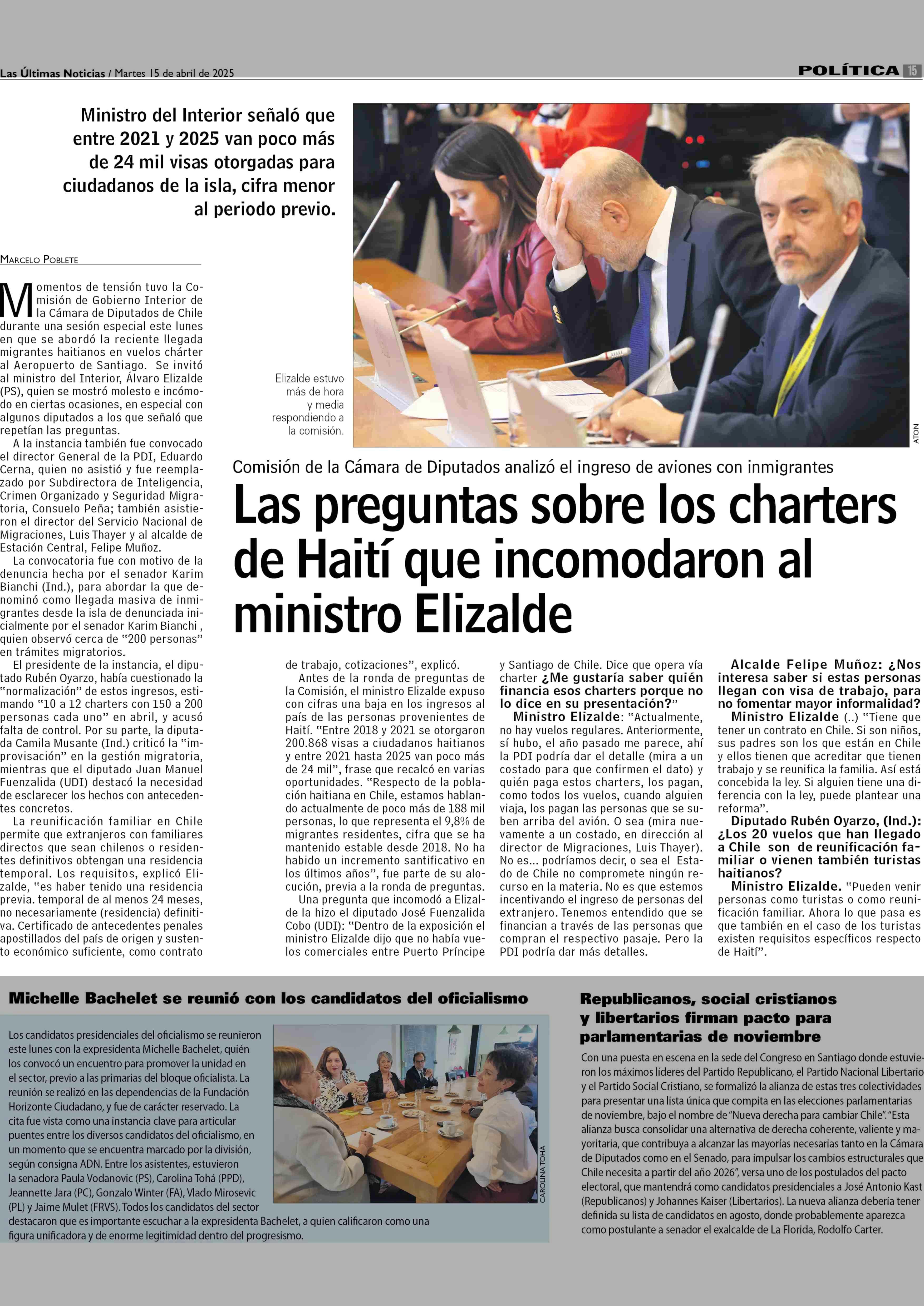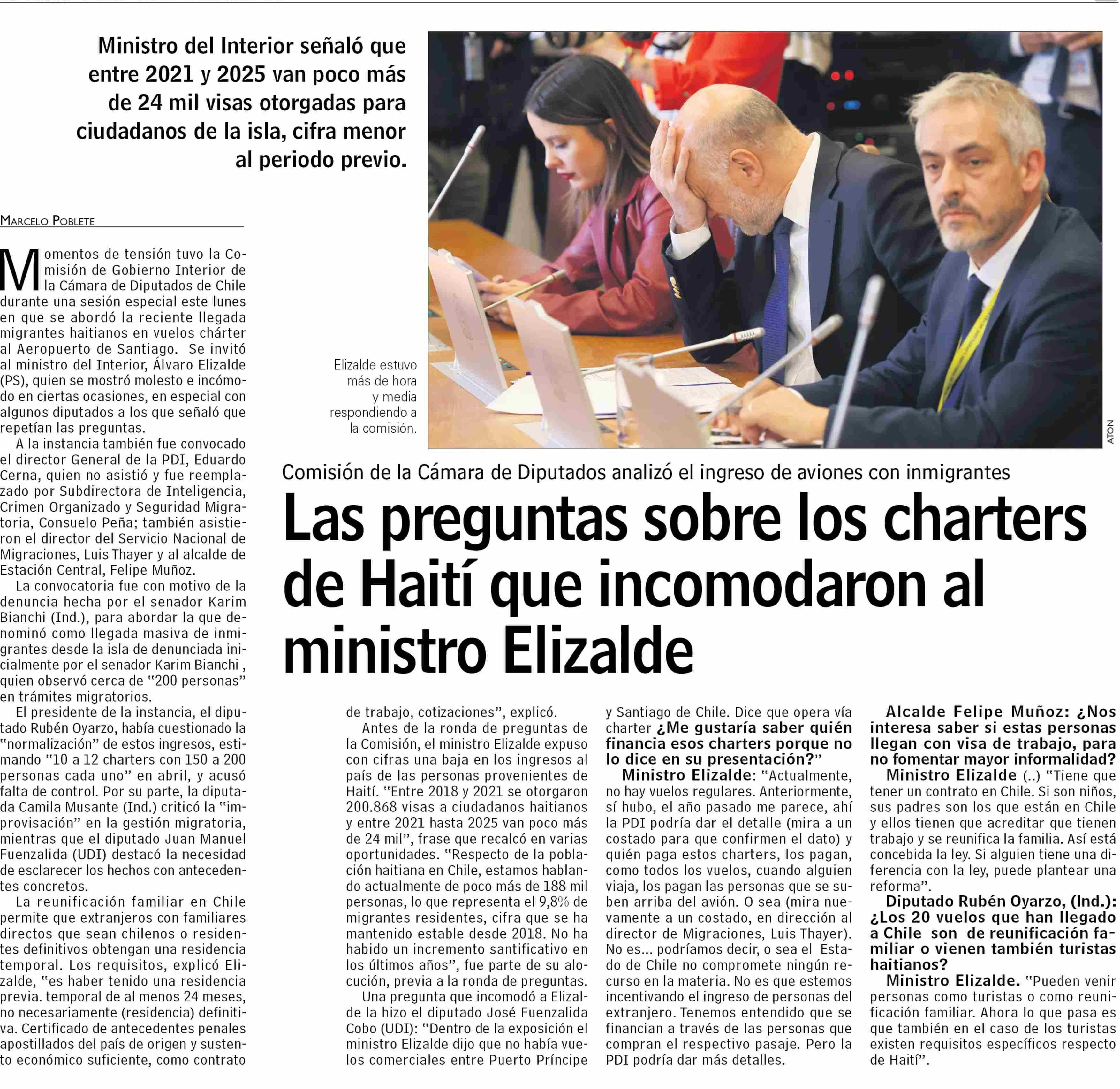 Las preguntas sobre los charters de Haití que incomodaron al ministro Elizalde 15-04-2025 Las Últimas Noticias |