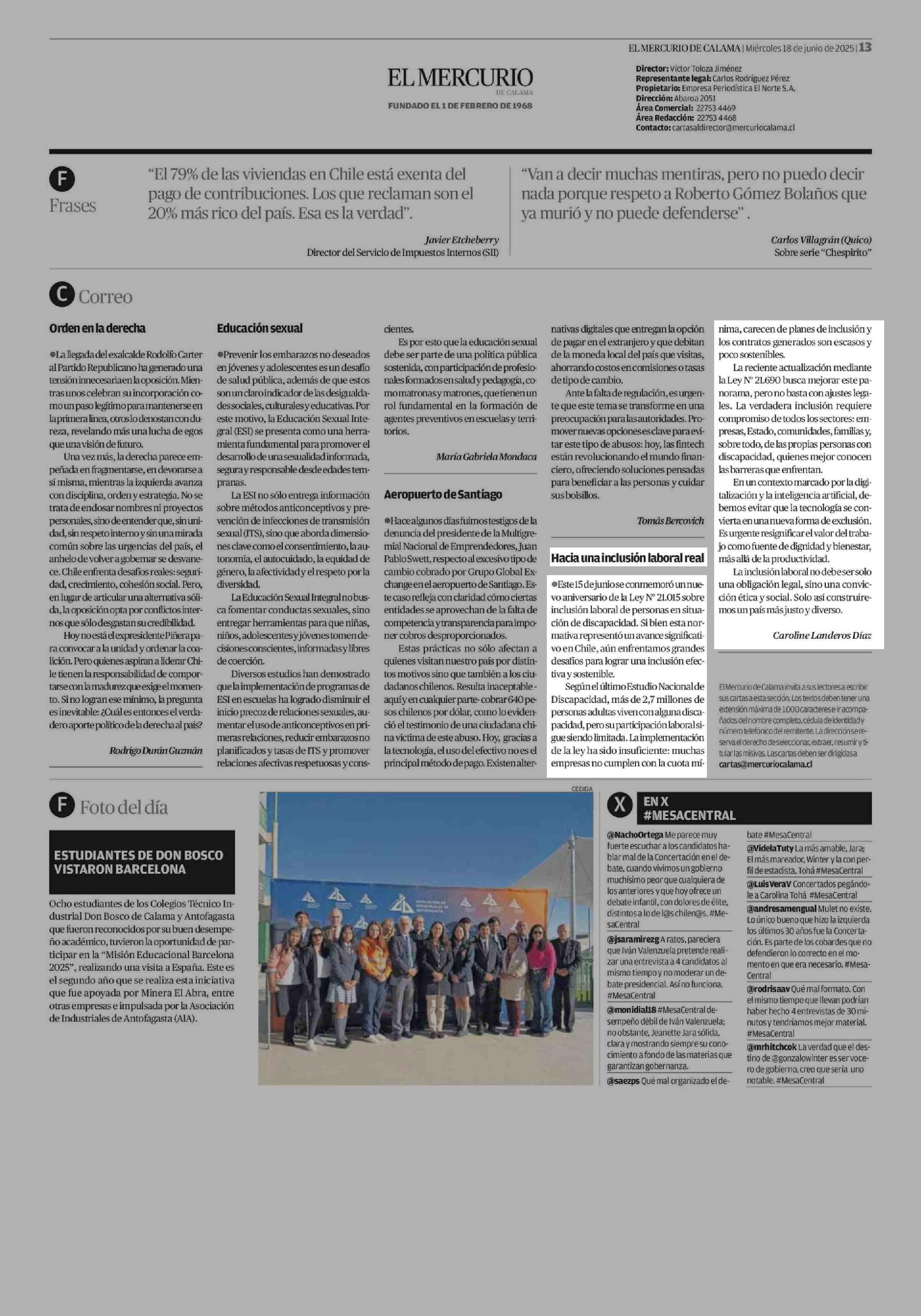 Hacia una inclusión laboral real 18-06-2025 El Mercurio de Calama |