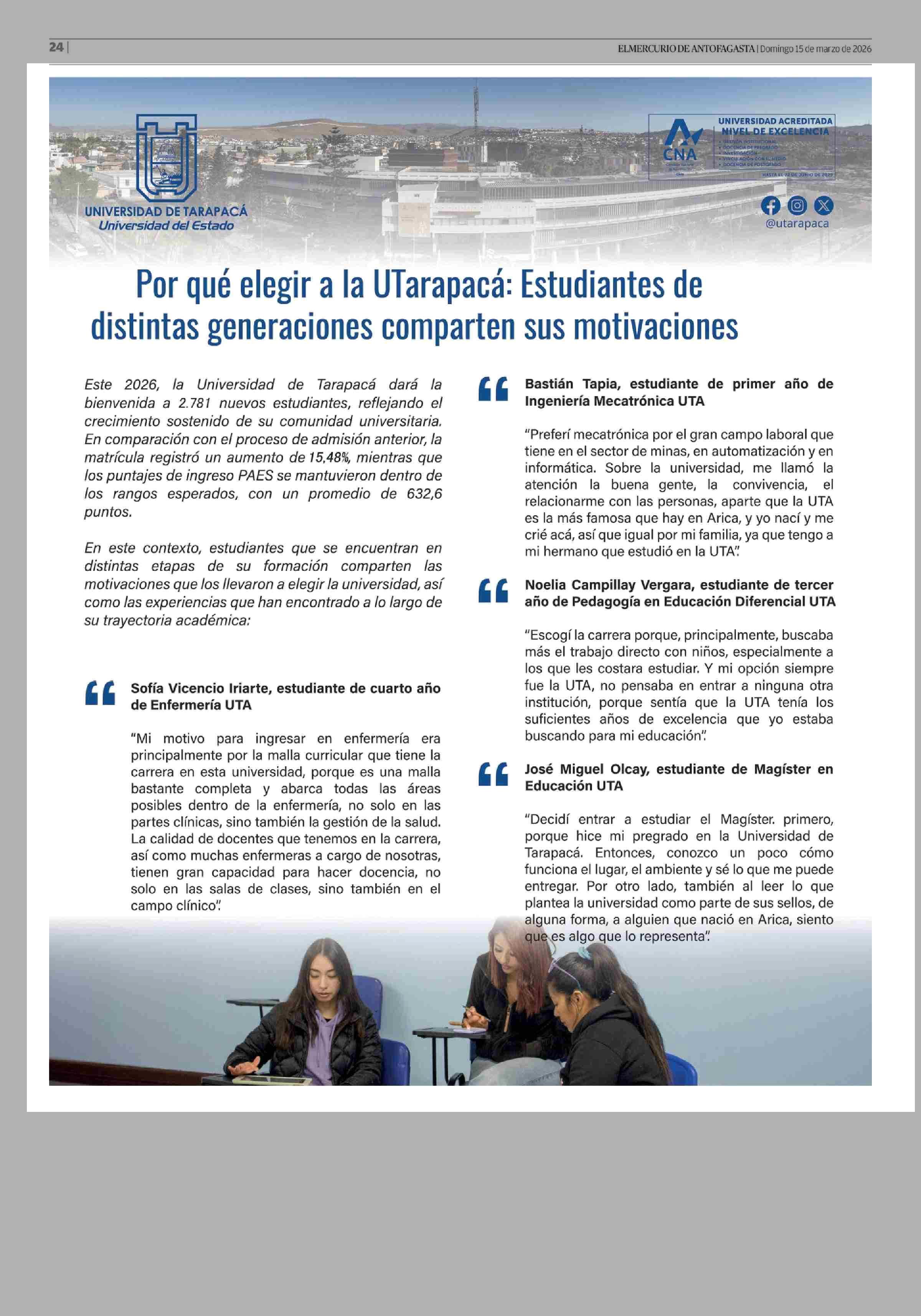 AVISO UNIVERSIDAD: UNIVERSIDAD DE TARAPACÁ 15-03-2026 El Mercurio de Calama |