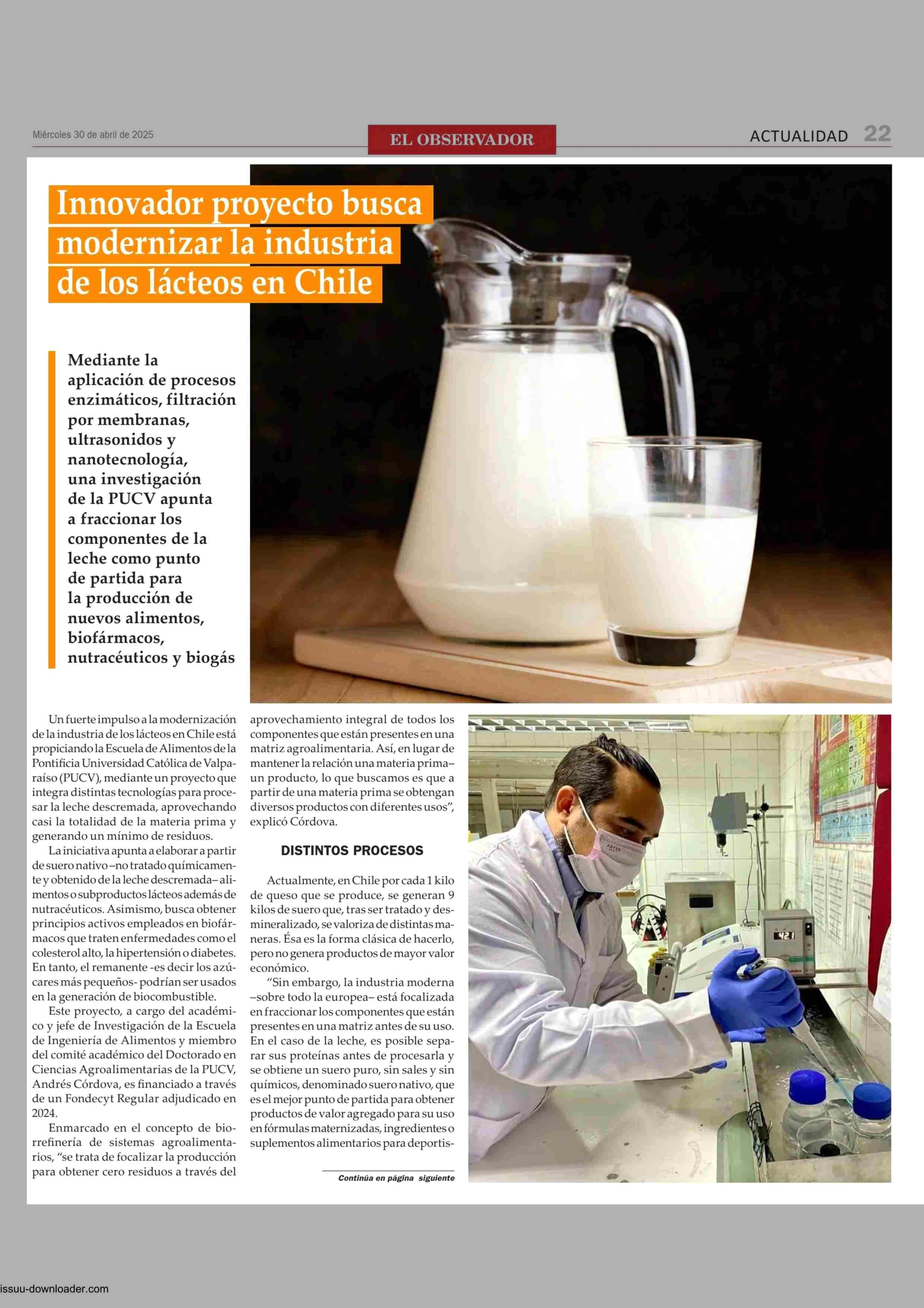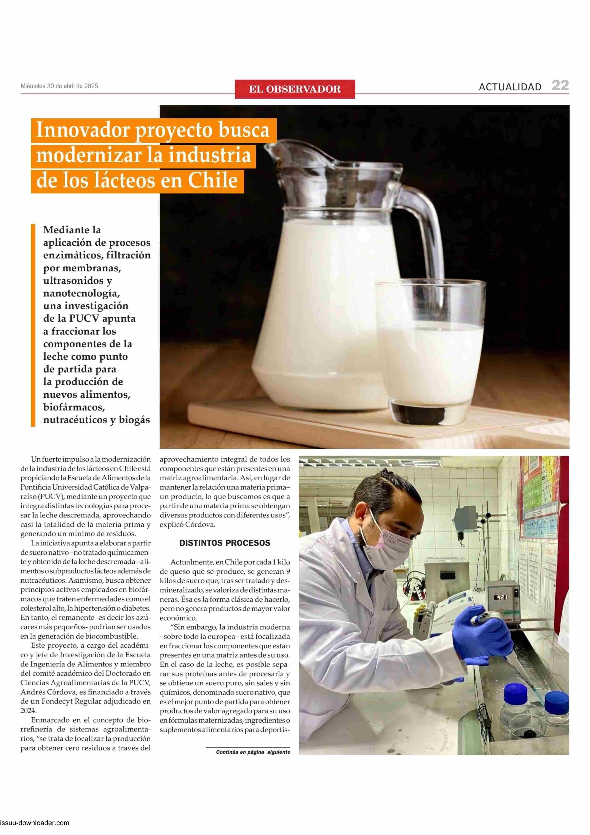 Título: Innovador proyecto busca modernizar la industria de los lácteos en Chile
