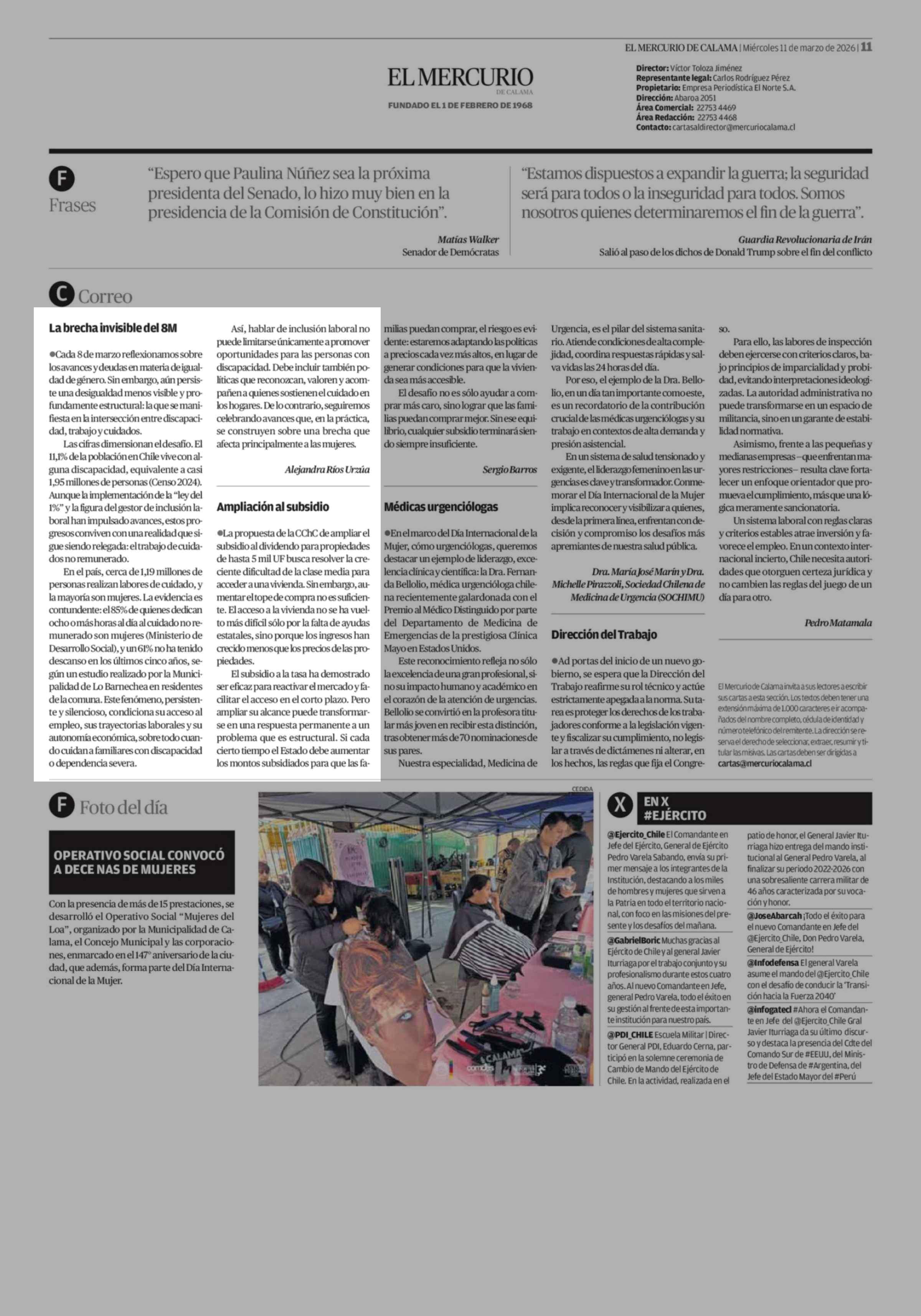 Cartas: La brecha invisible del 8M 11-03-2026 El Mercurio de Calama |