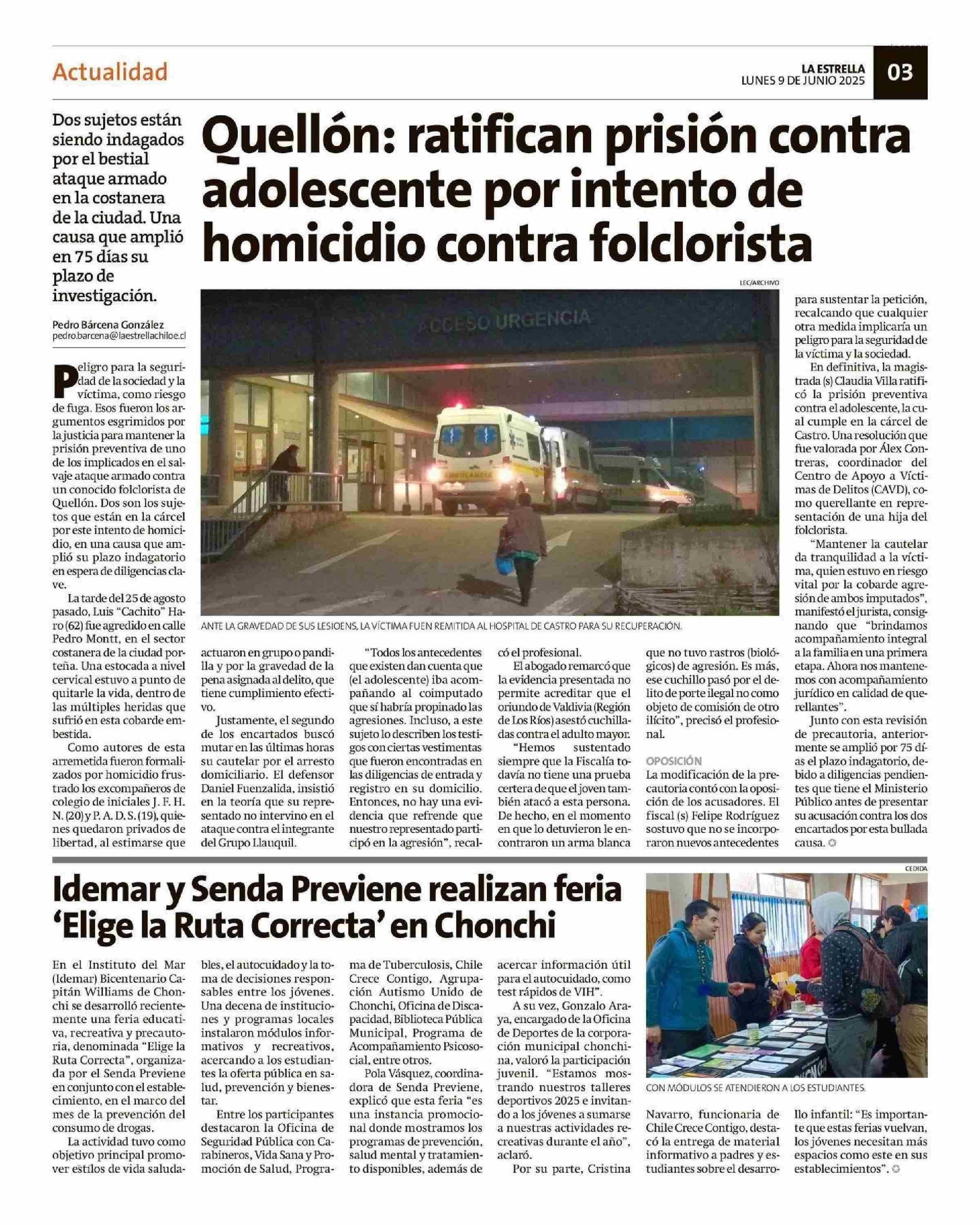 Idemar y Senda Previene realizan feria 'Elige la Ruta Correcta' en Chonchi 09-06-2025 La Estrella de Chiloé |
