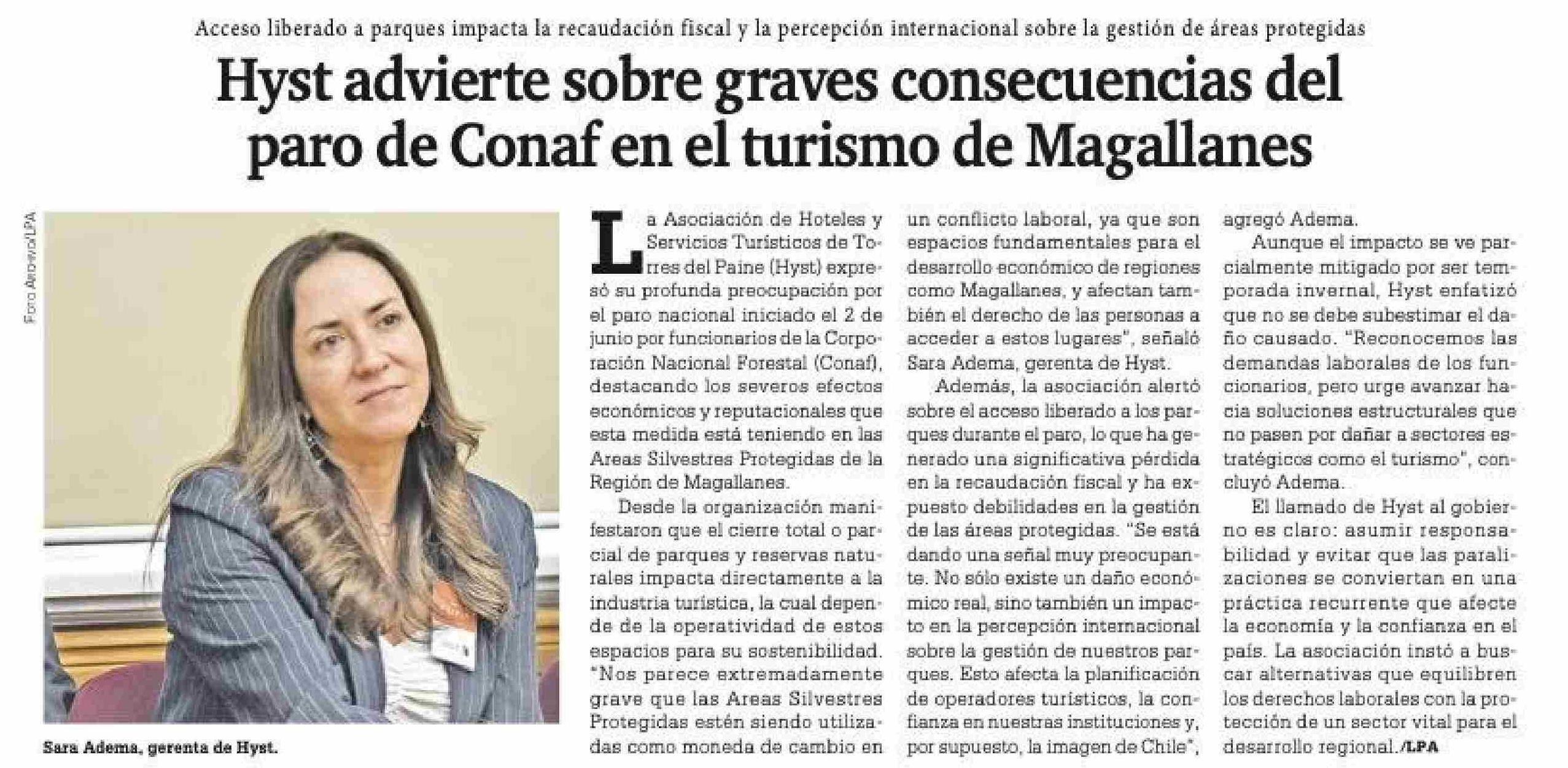 Hyst advierte sobre graves consecuencias del paro de Conaf en el turismo de Magallanes 06-06-2025 La Prensa Austral |