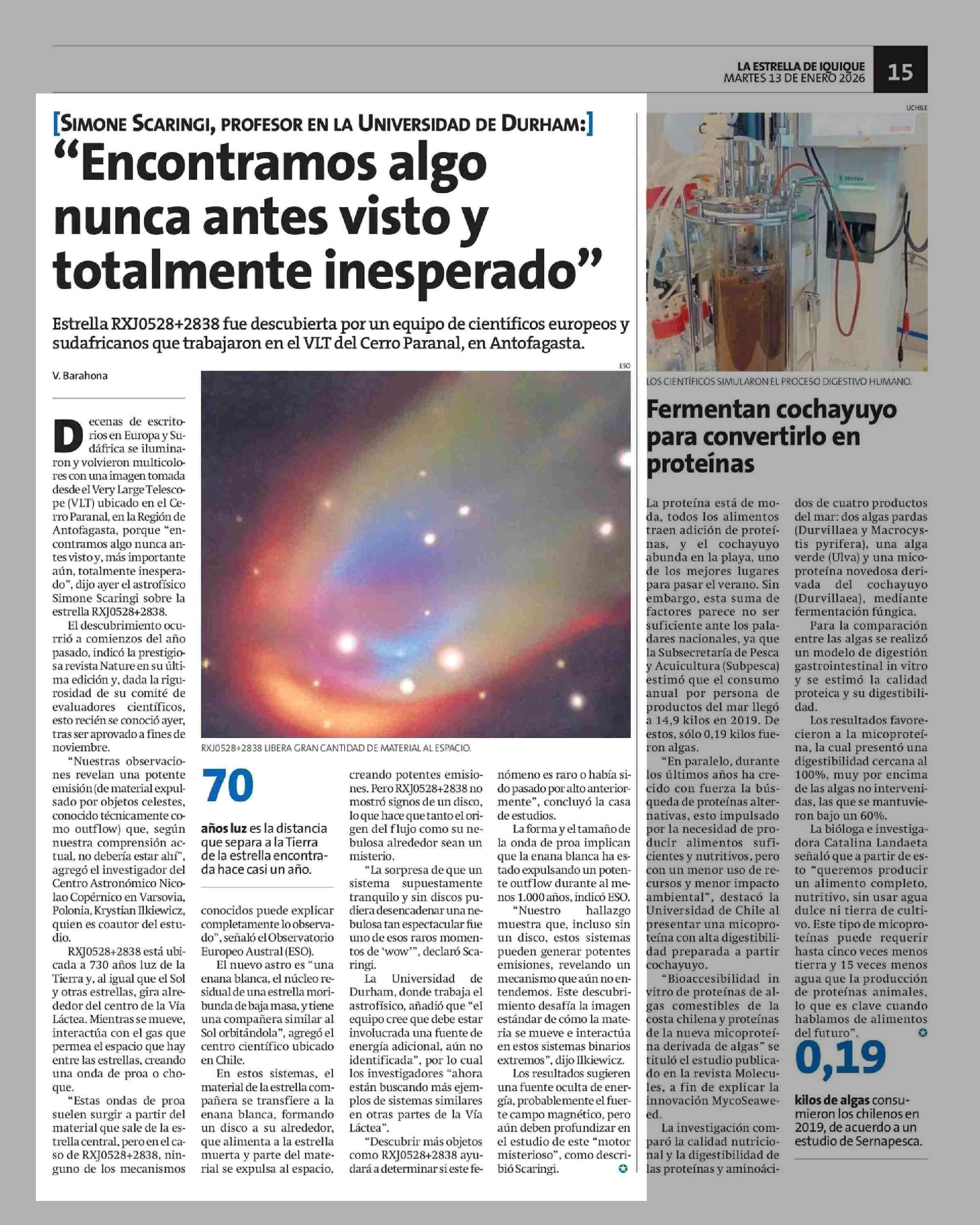"Encontramos algo nunca antes visto y totalmente inesperado" 13-01-2026 La Estrella de Iquique |
