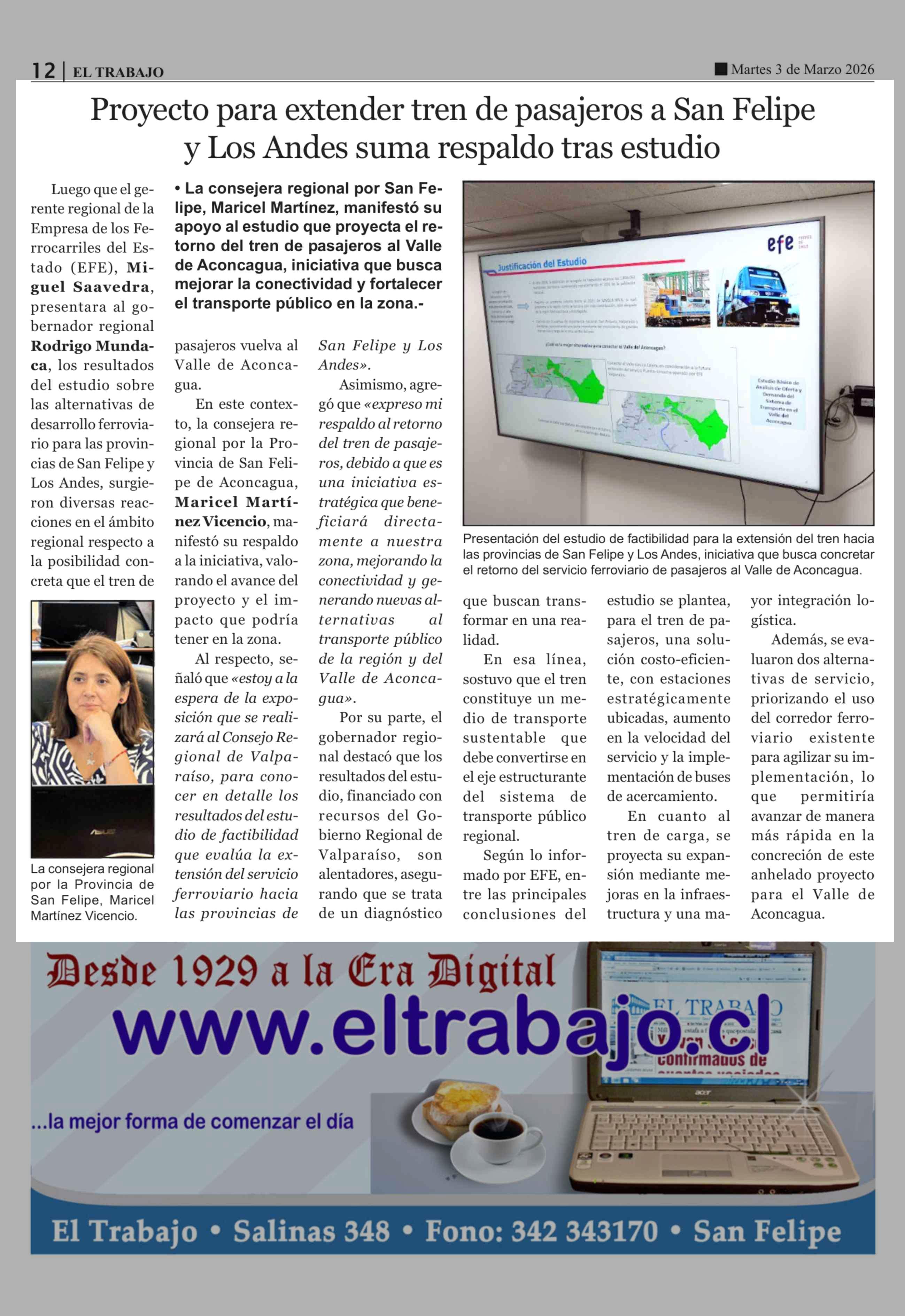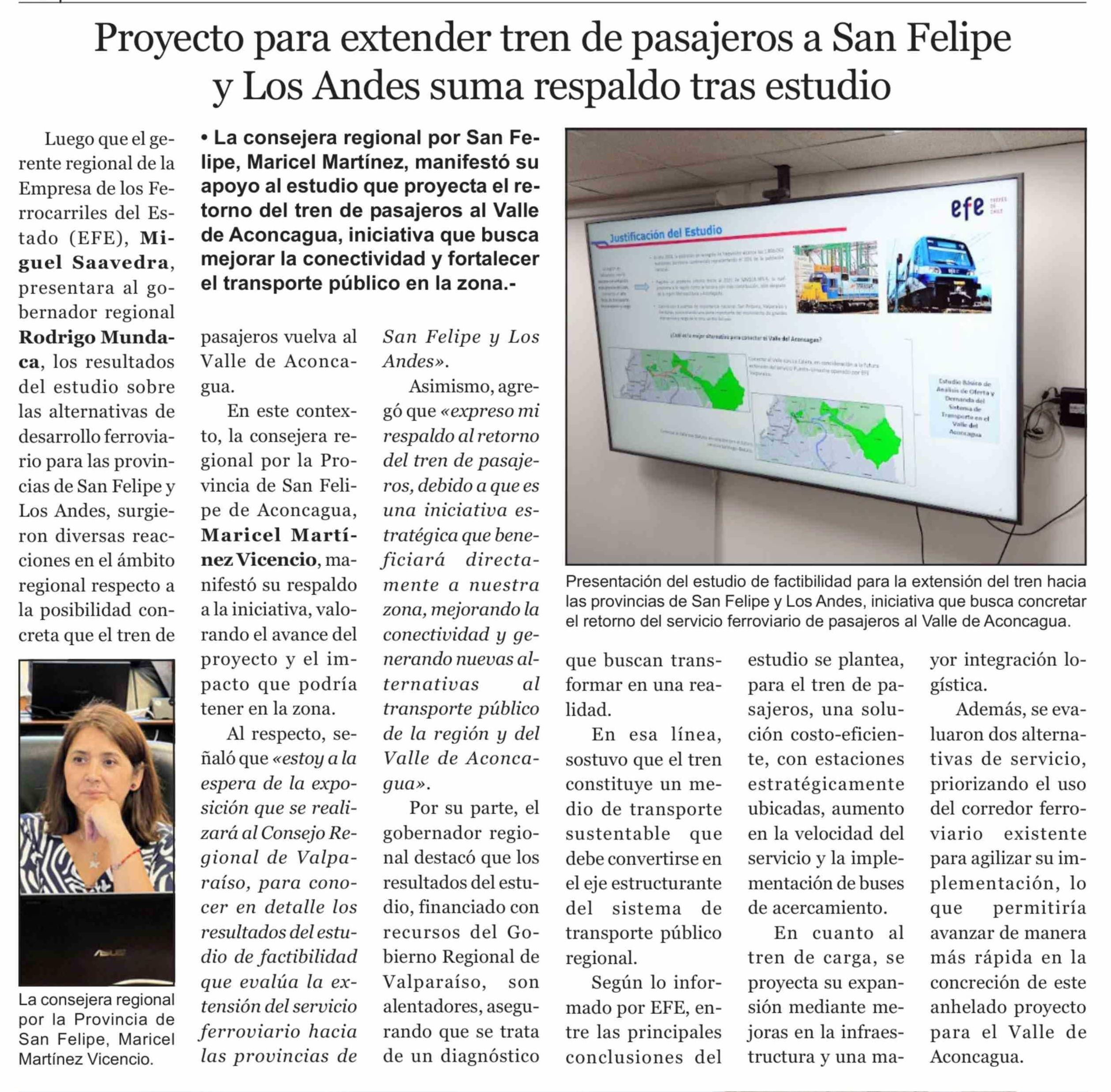 Título: Proyecto para extender tren de pasajeros a San Felipe y Los Andes suma respaldo tras estudio