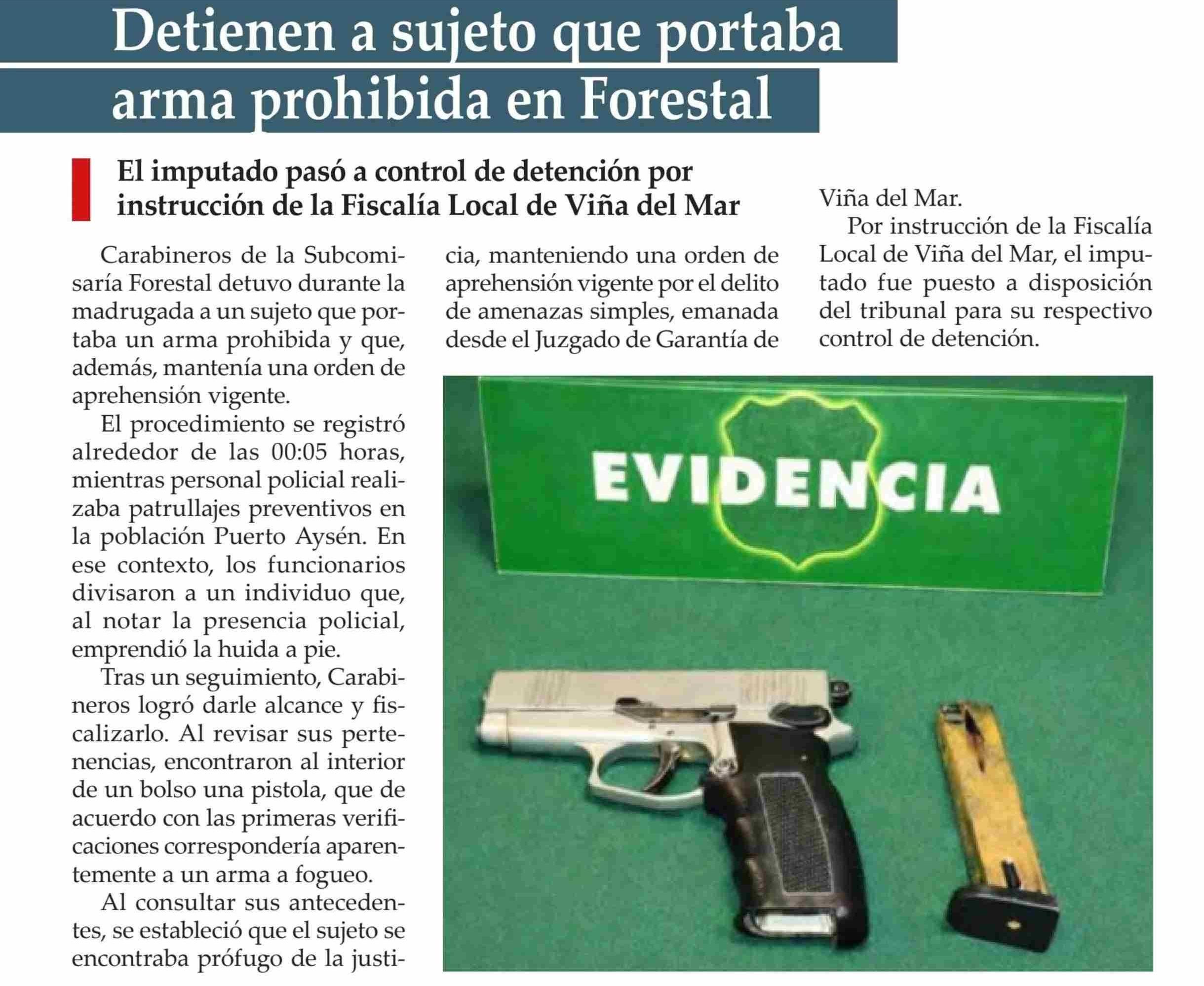 | Título: | Detienen a sujeto que portaba arma prohibida en Forestal |