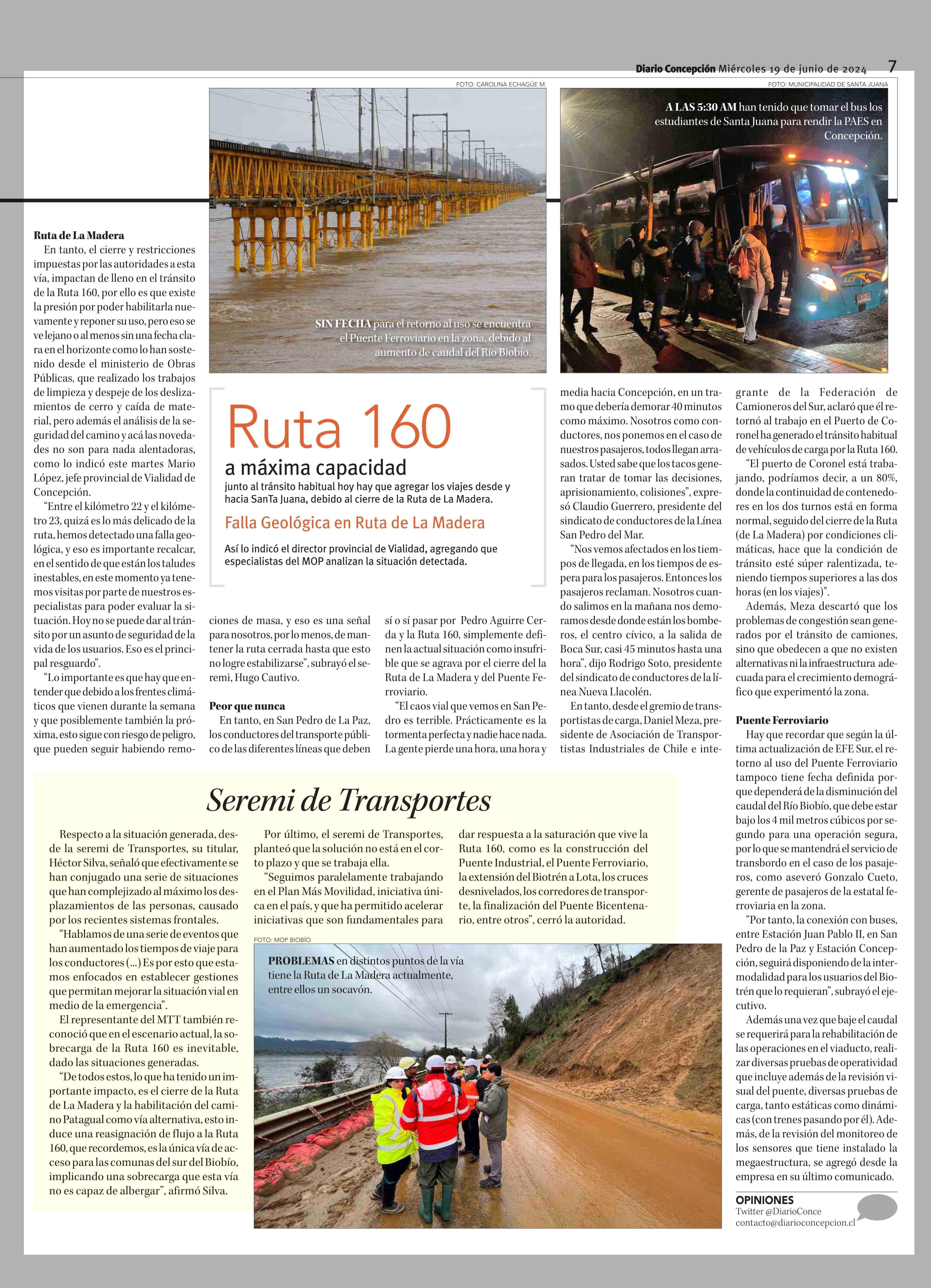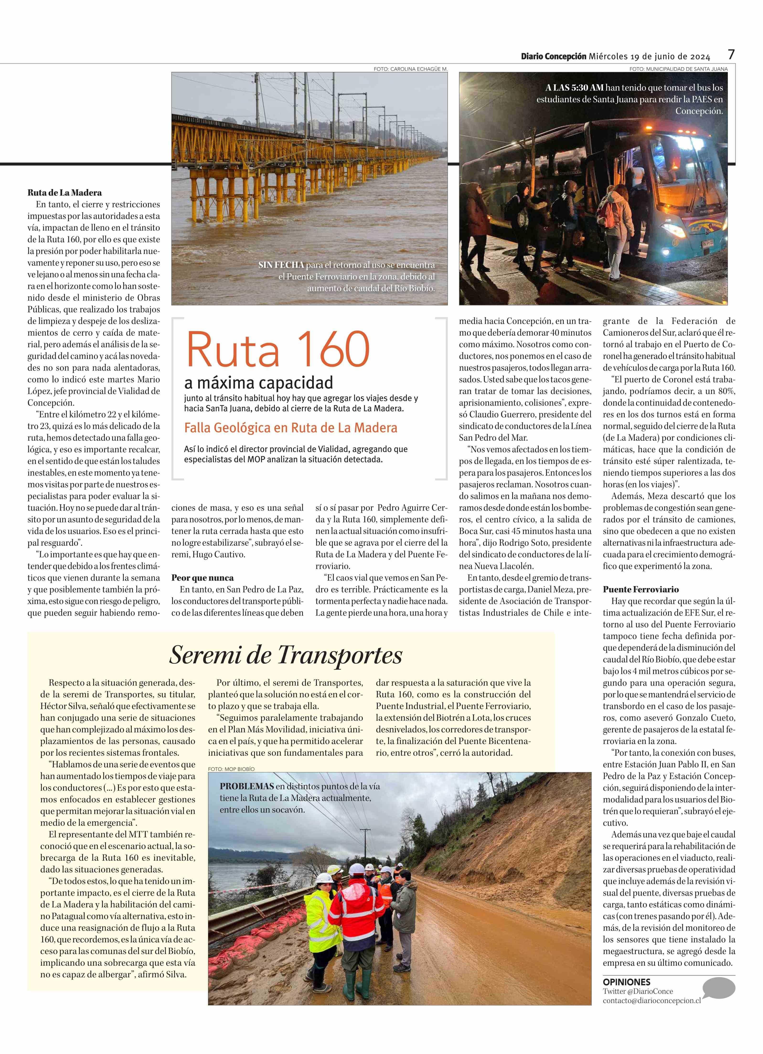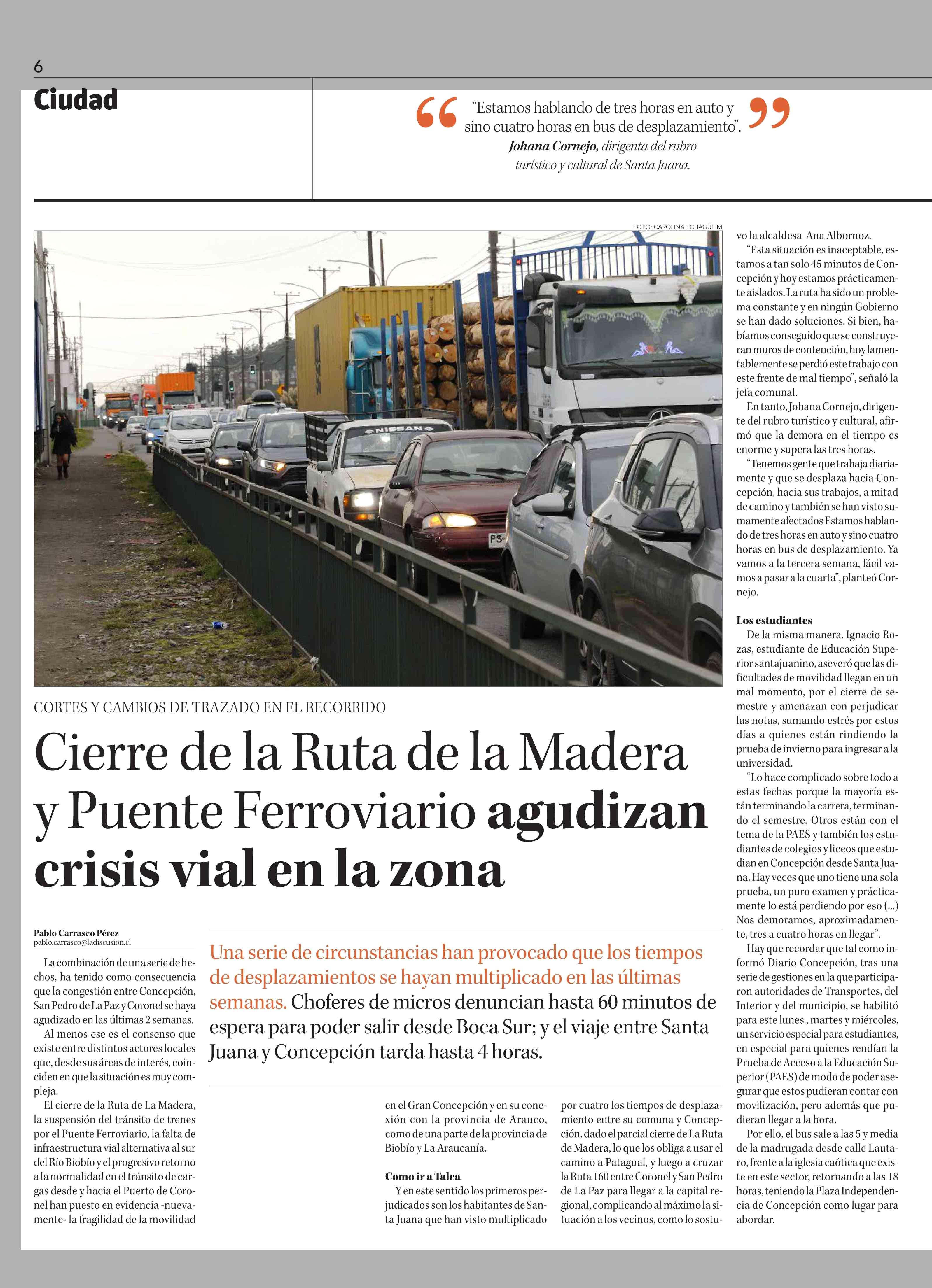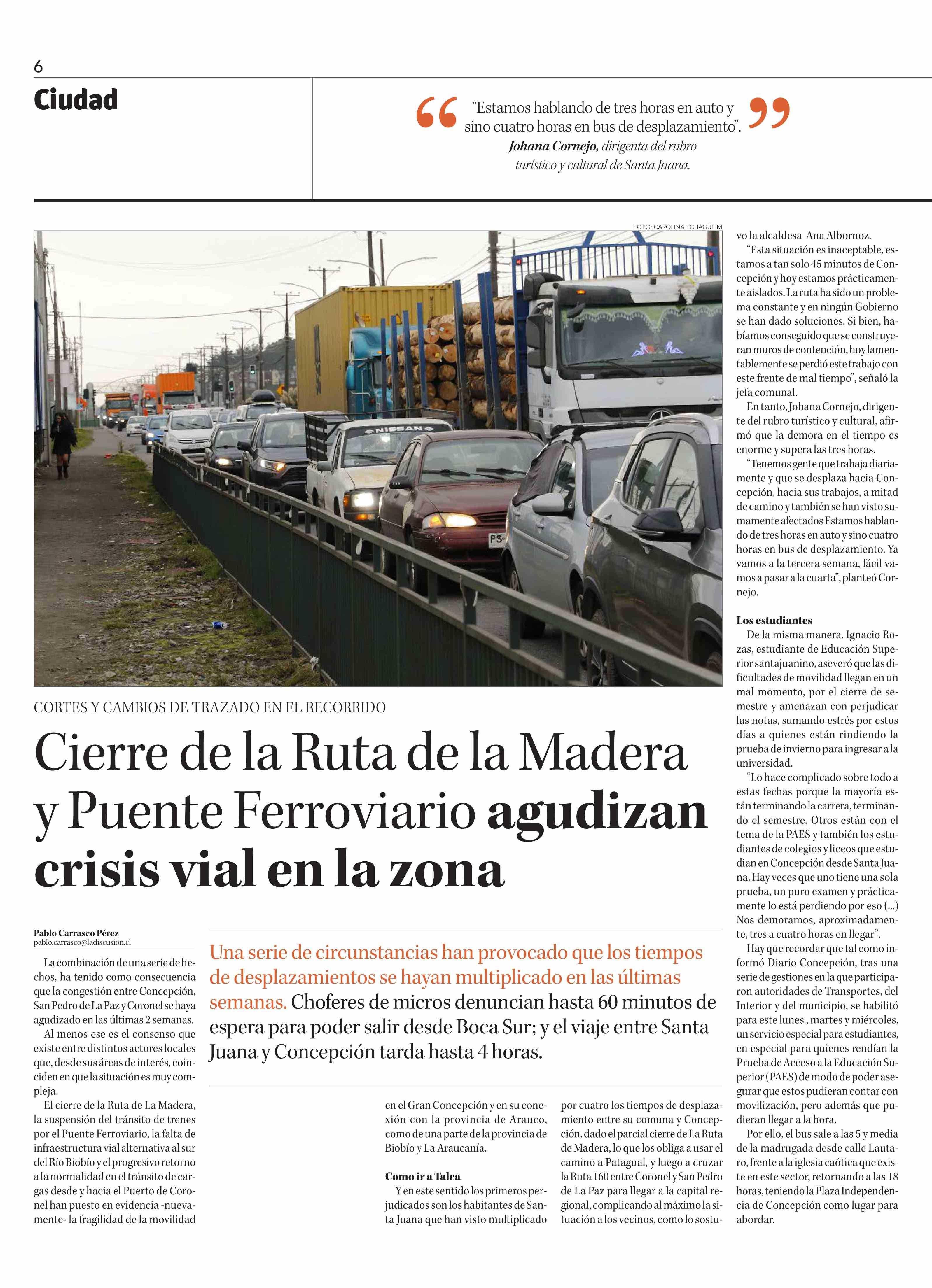 Cierre de la Ruta de la Madera y Puente Ferroviario agudizan crisis vial en la zona 19-06-2024 Diario Concepción |
