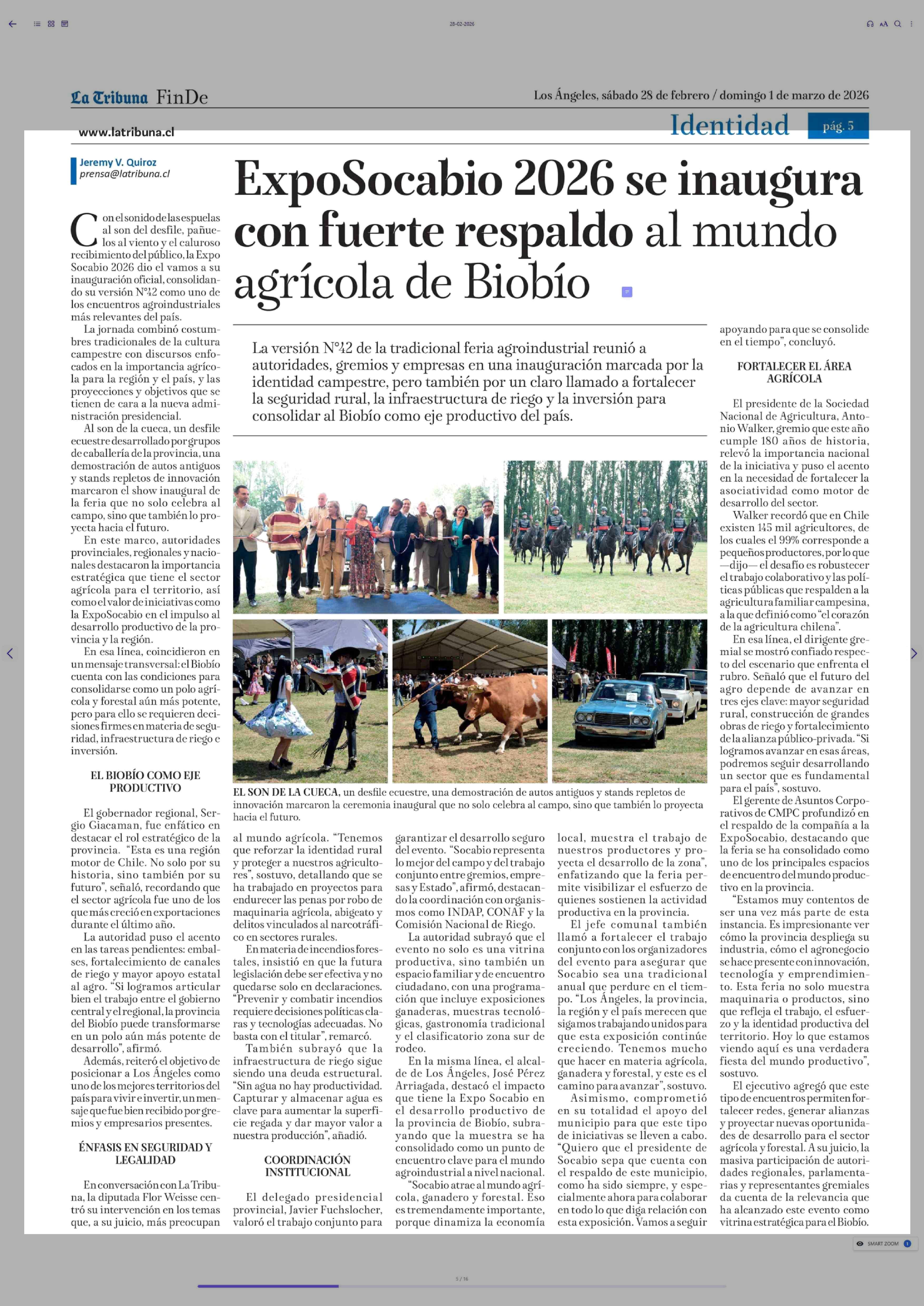 Título: ExpoSocabio 2026 se inaugura con fuerte respaldo al mundo agrícola de Biobío