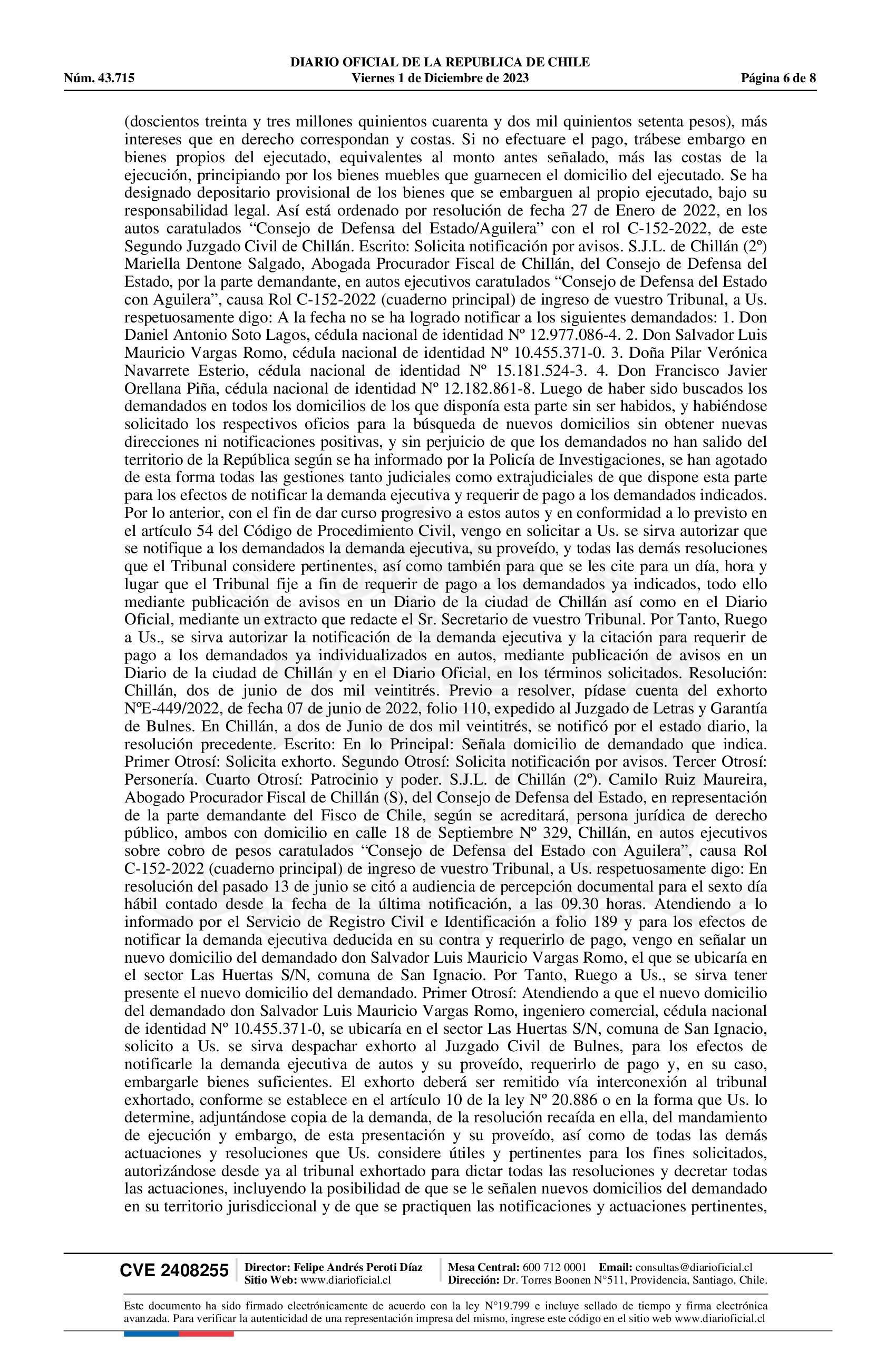 | Fuente: | Diario Oficial Edición Electrónica (Diario Oficial de Chile - 3 Public. Judiciales) | Página(s): | 467-474 |