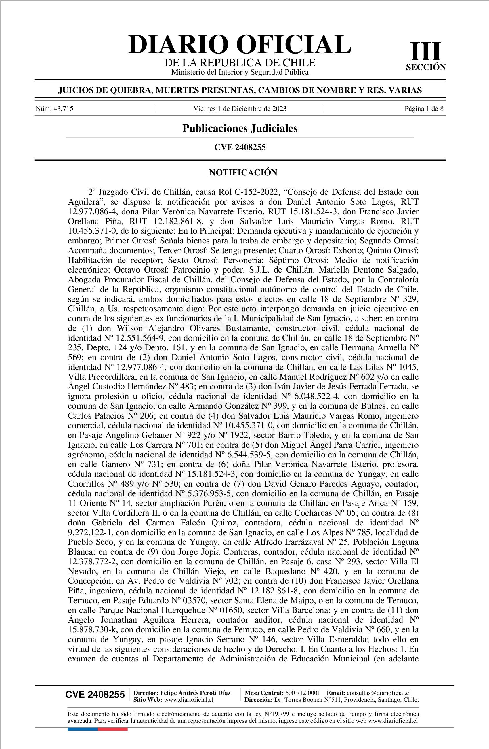 Notificación 01-12-2023 Diario Oficial Edición Electrónica |