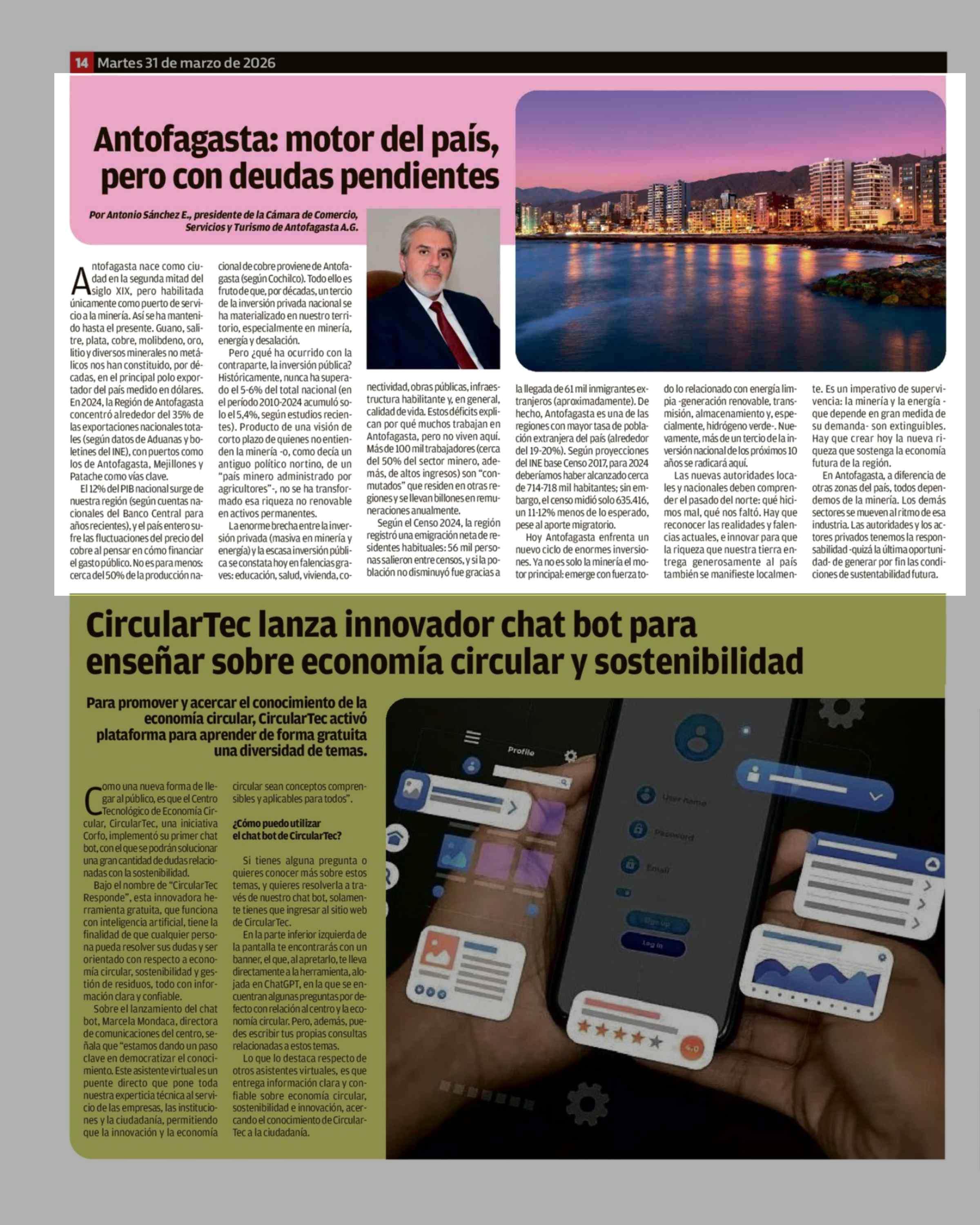 Antofagasta: motor del país, pero con deudas pendientes 31-03-2026 El Mercurio de Antofagasta |