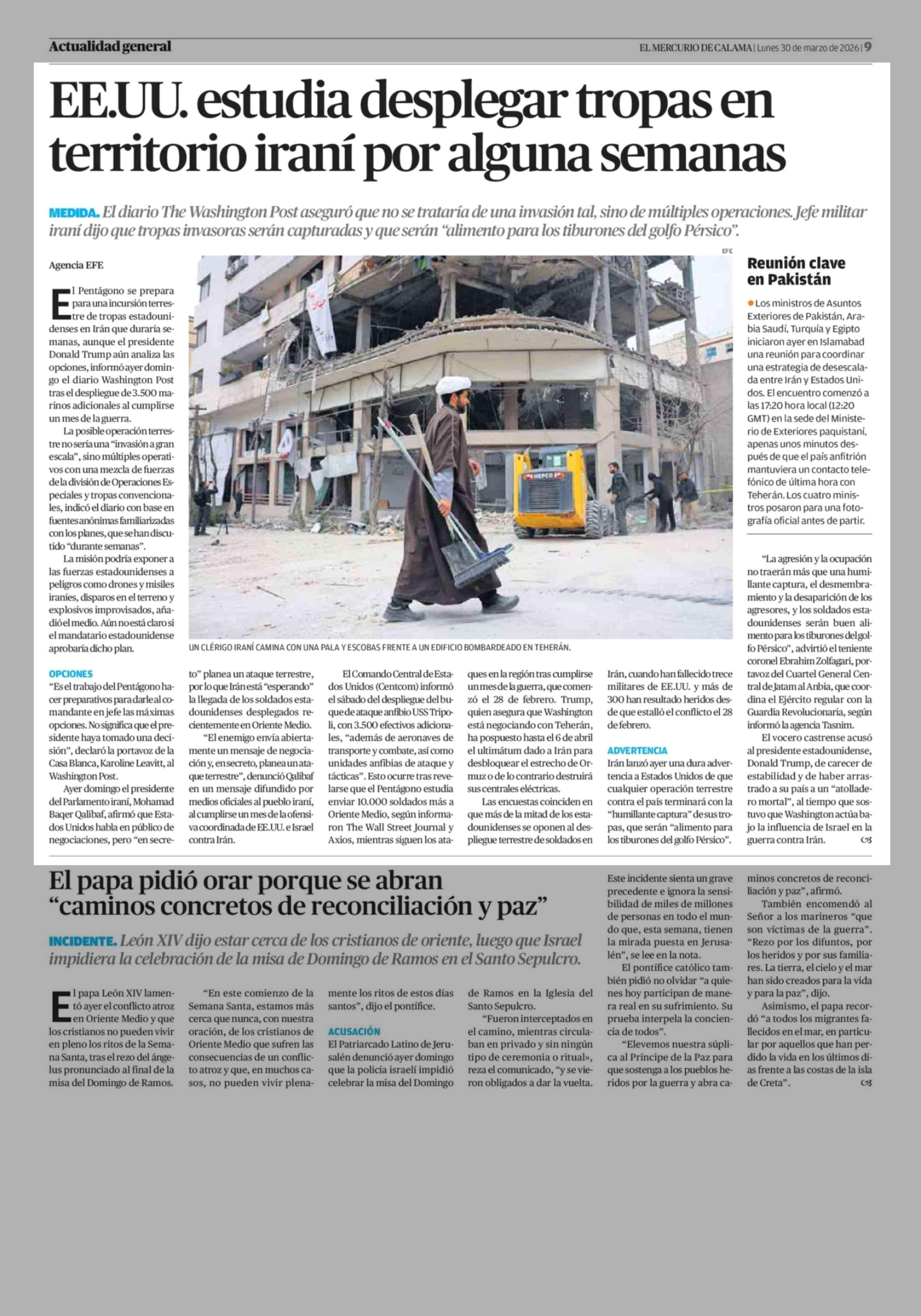 Título: EE.UU. estudia desplegar tropas en territorio iraní por alguna semanas