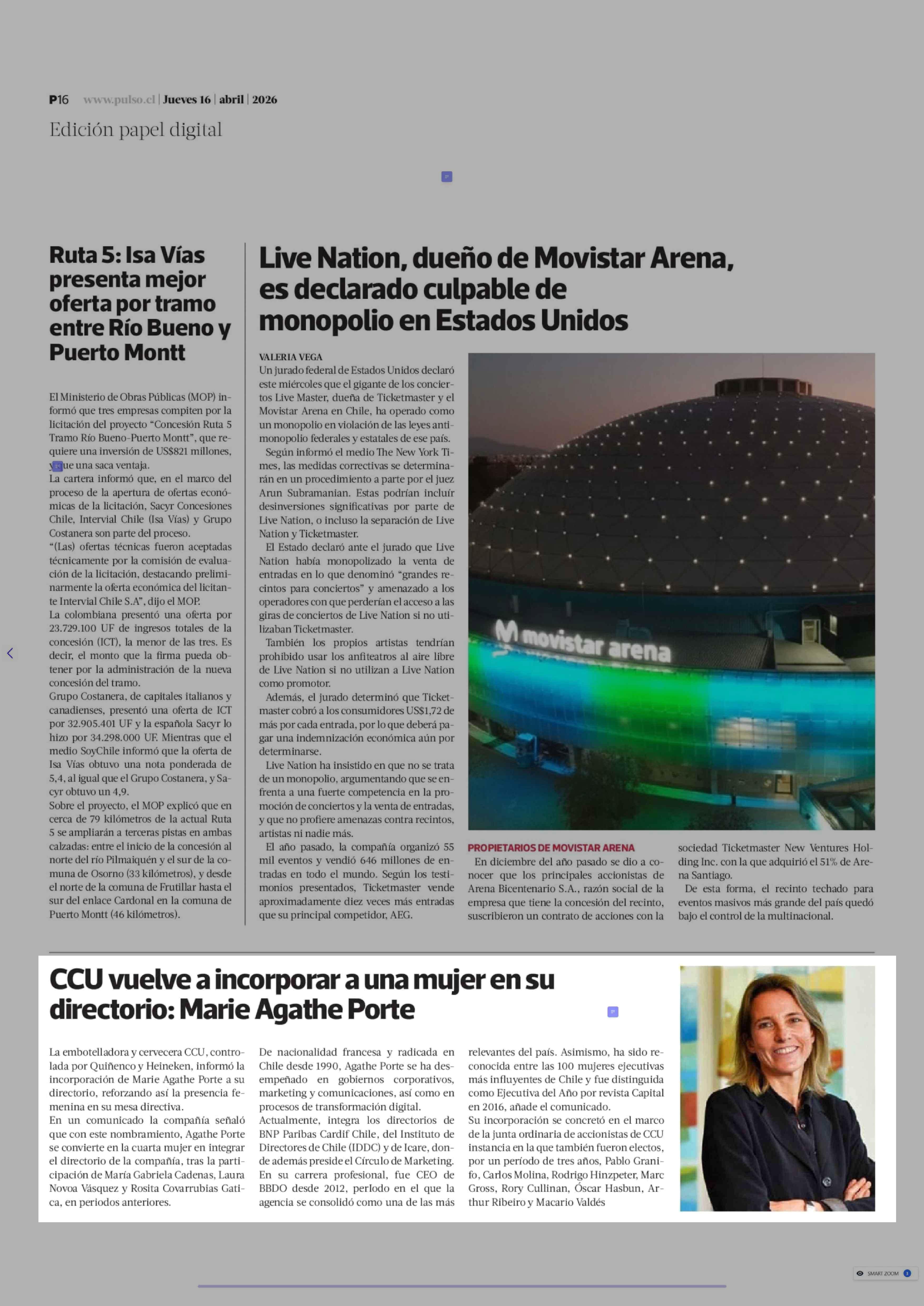 Fuente: La Tercera (La Tercera - Pulso) Página(s): 16