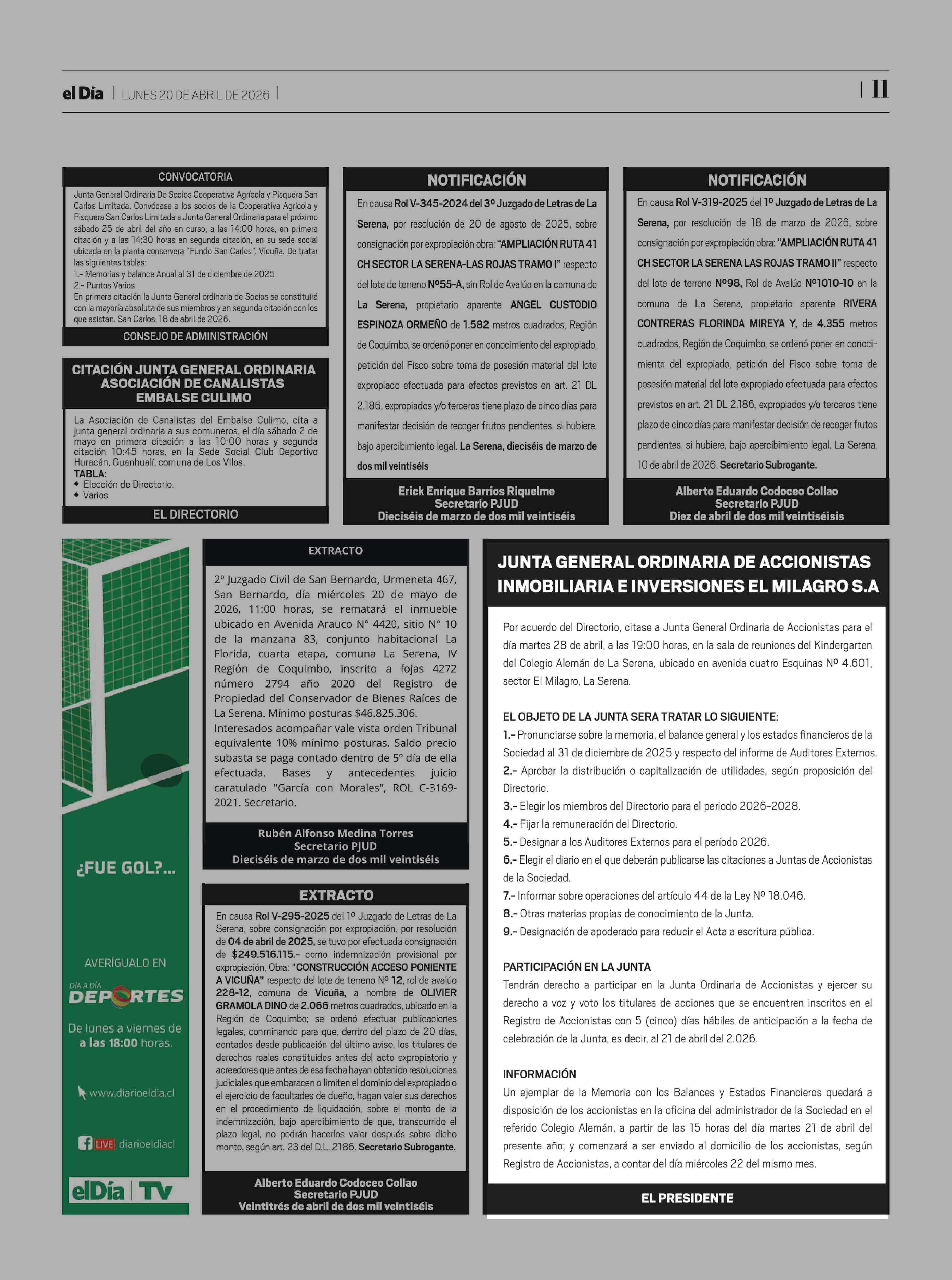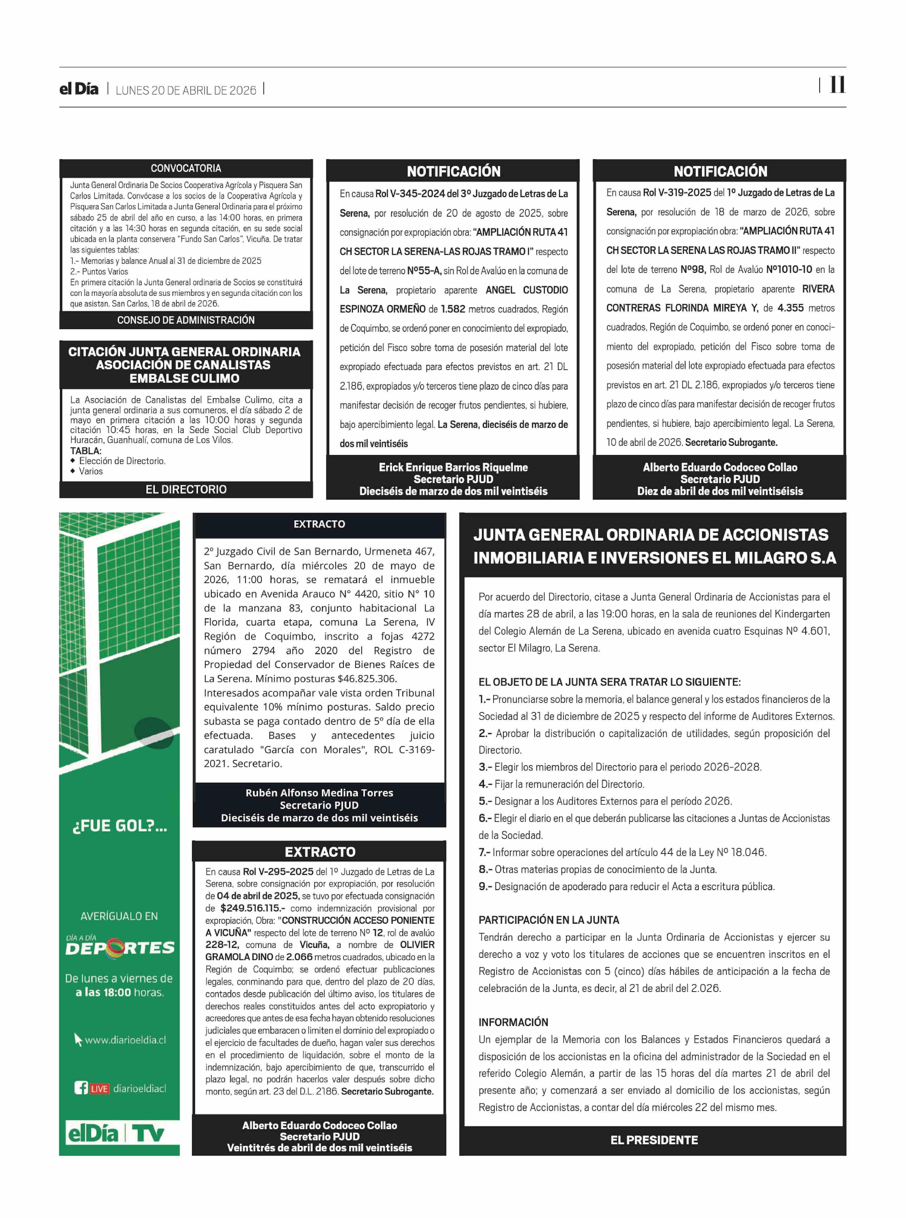 Fecha: 20-04-2026 Sector: Noticia general Región: Región de Coquimbo
