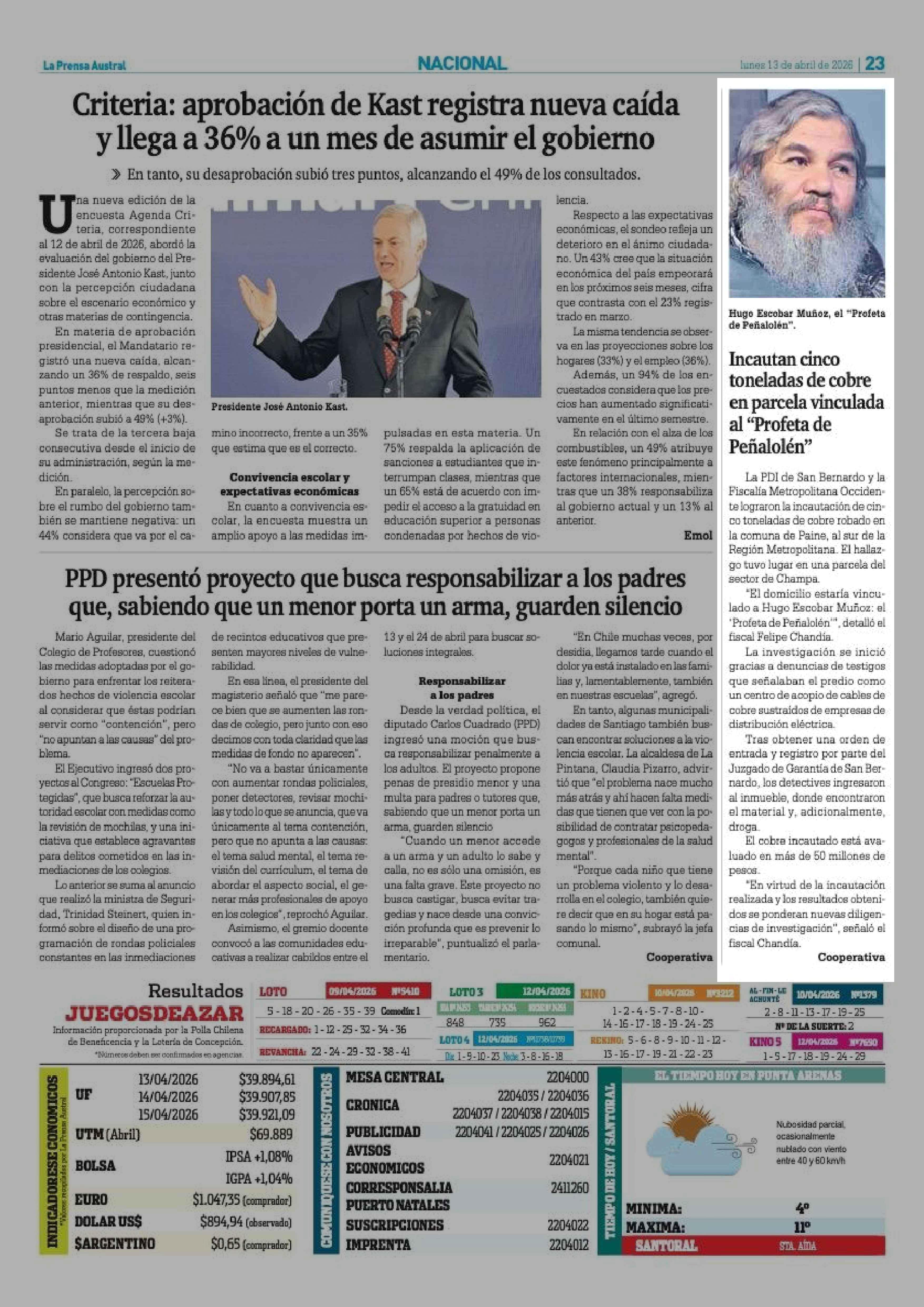 Fecha: 13-04-2026 Sector: Noticia general Región: Región de Magallanes y de la Antártica Chilena