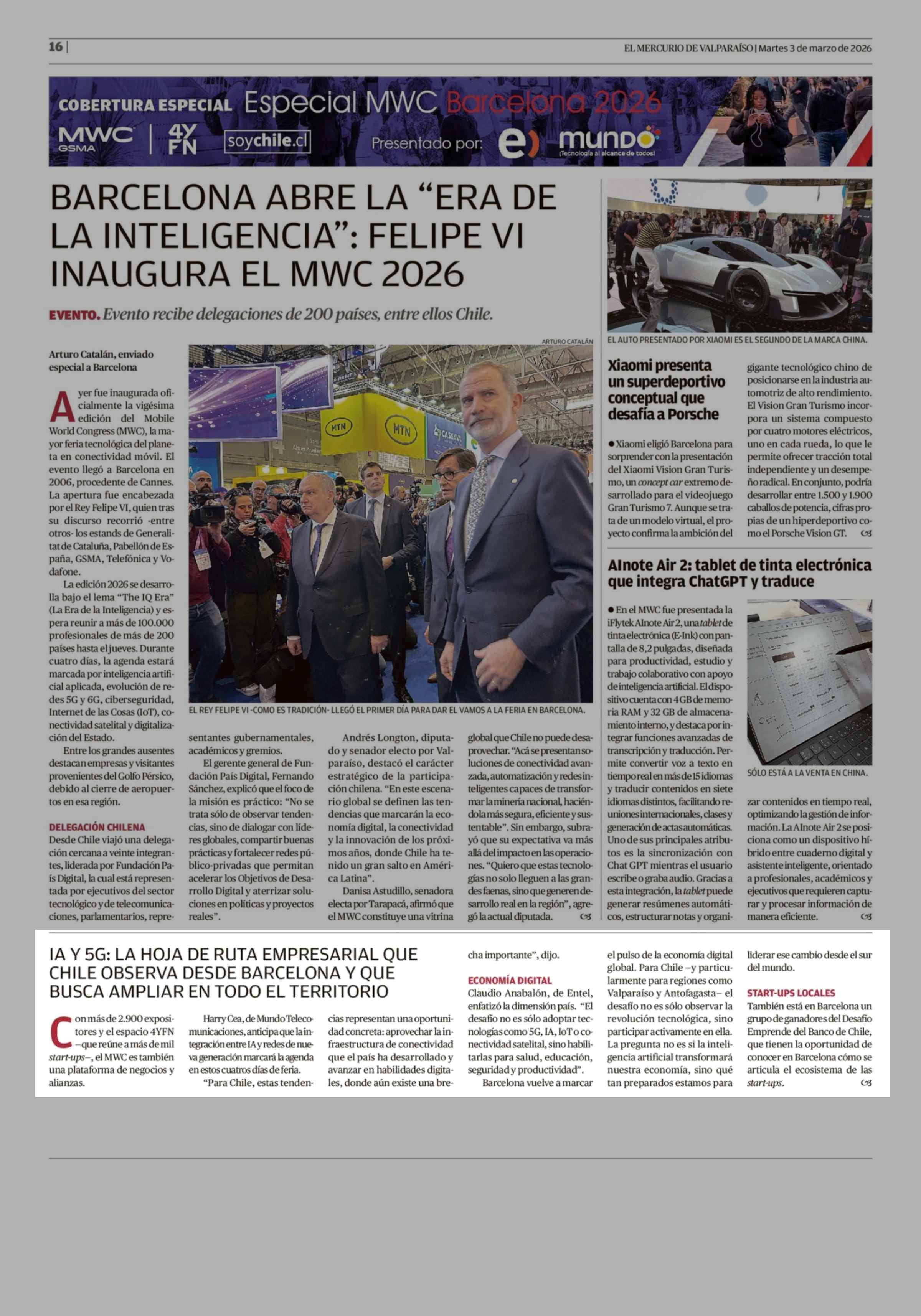 Título: IA Y 5G: LA HOJA DE RUTA EMPRESARIAL QUE CHILE OBSERVA DESDE BARCELONA Y QUE BUSCA AMPLIAR EN TODO EL TERRITORIO