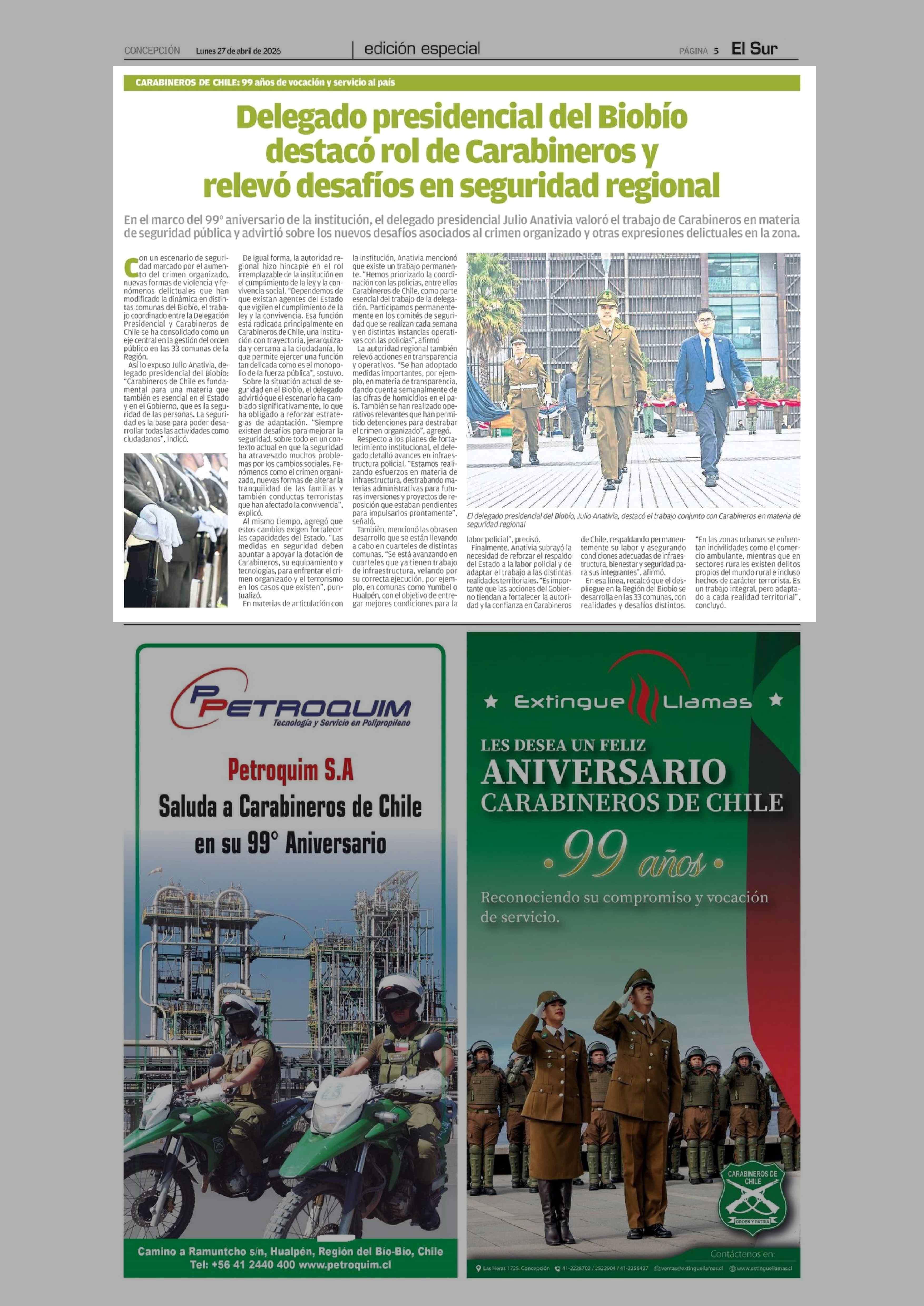 Título: Delegado presidencial del Biobio destacó rol de Carabineros y relevo desafíos en seguridad regional