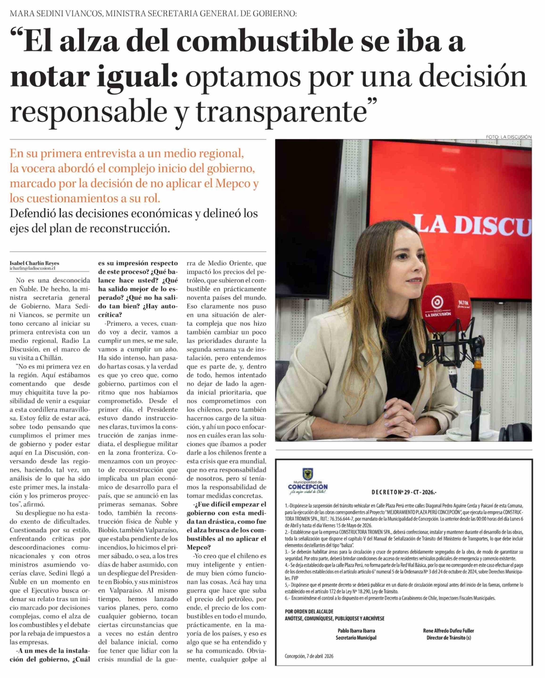 "El alza del combustible se iba a notar igual: optamos por una decisión responsable y transparente" 12-04-2026 Diario Concepción |