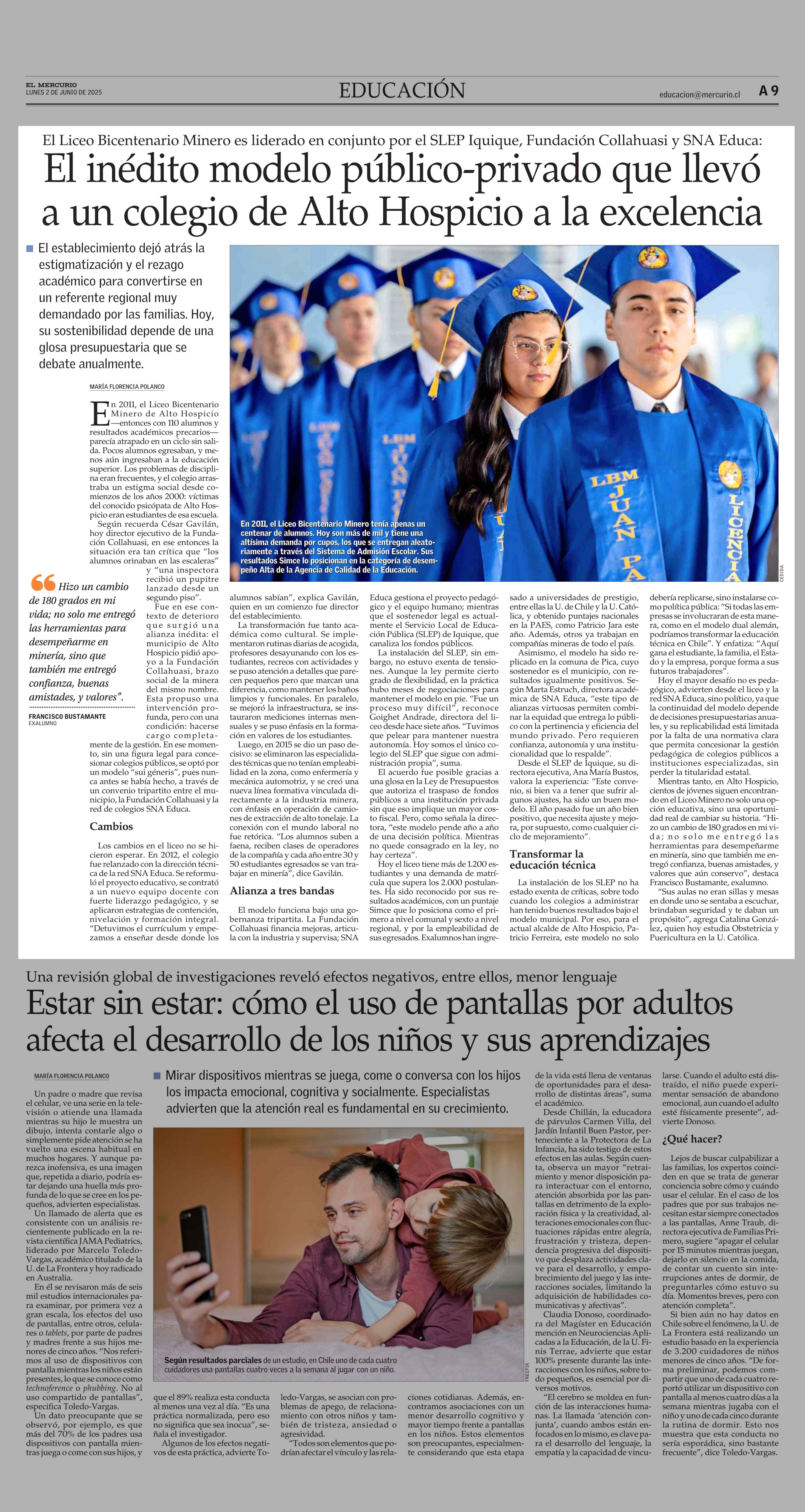El inédito modelo público-privado que llevó a un colegio de Alto Hospicio a la excelencia 02-06-2025 El Mercurio |