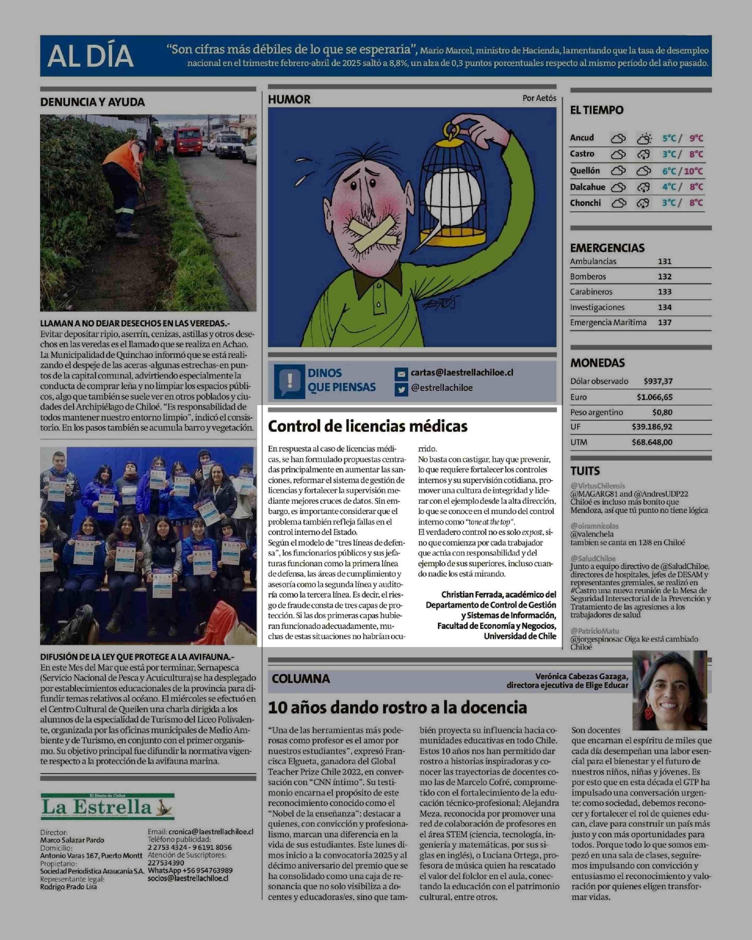 Cartas: Control de licencias médicas 30-05-2025 La Estrella de Chiloé |