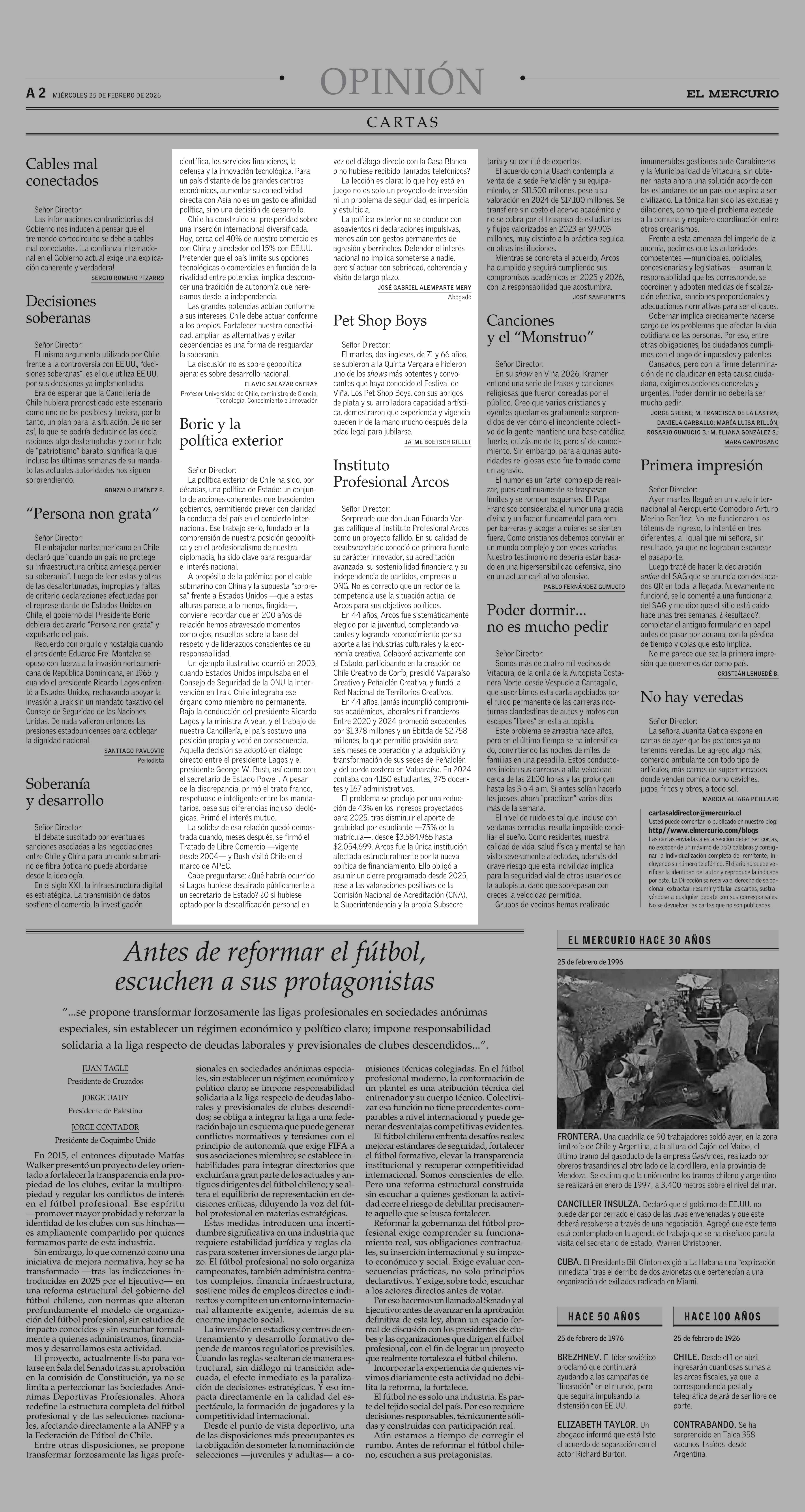 Cartas: Boric y la política exterior 25-02-2026 El Mercurio |