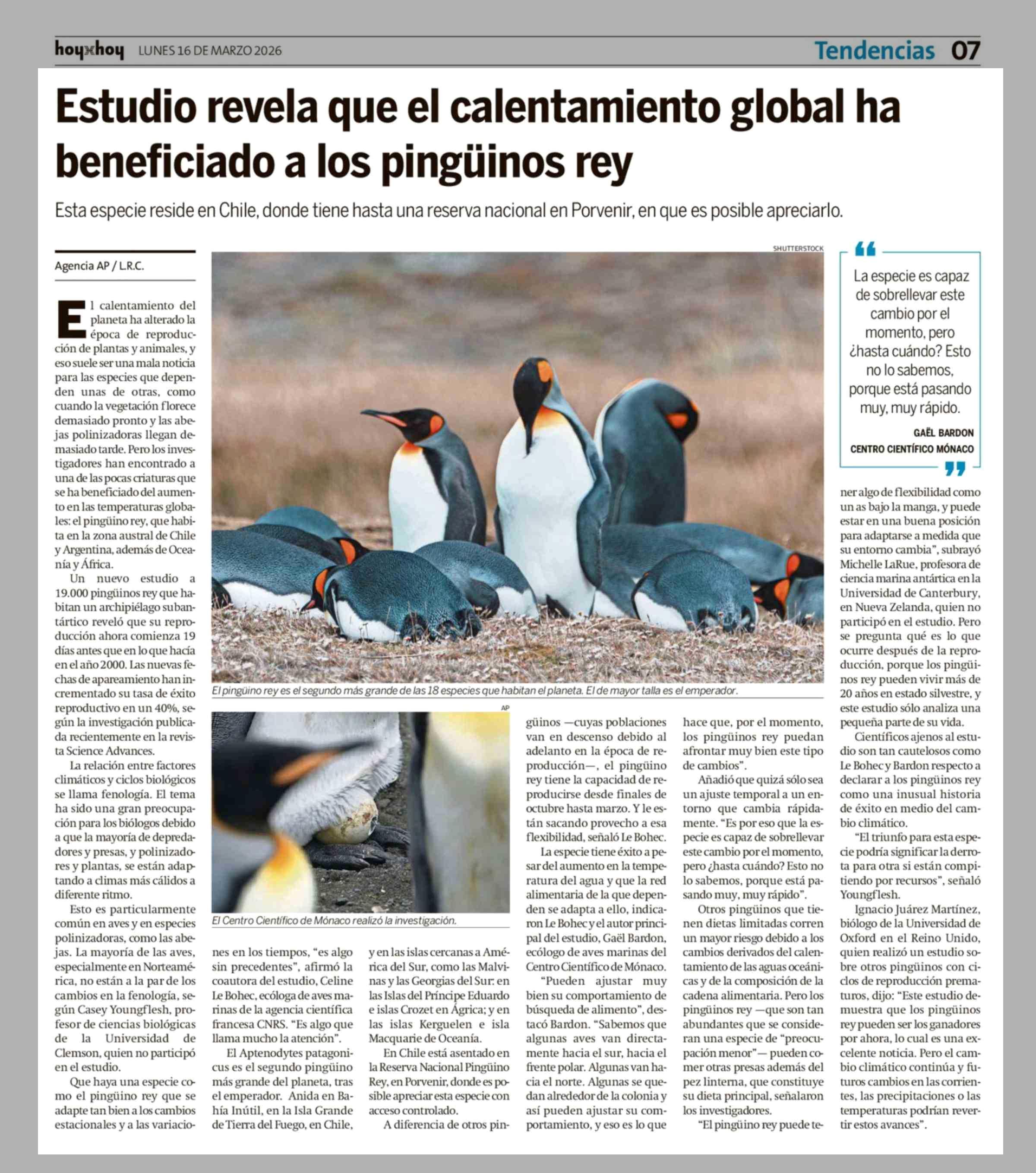 Estudio revela que el calentamiento global ha beneficiado a los pingüinos rey 16-03-2026 Hoy x Hoy |