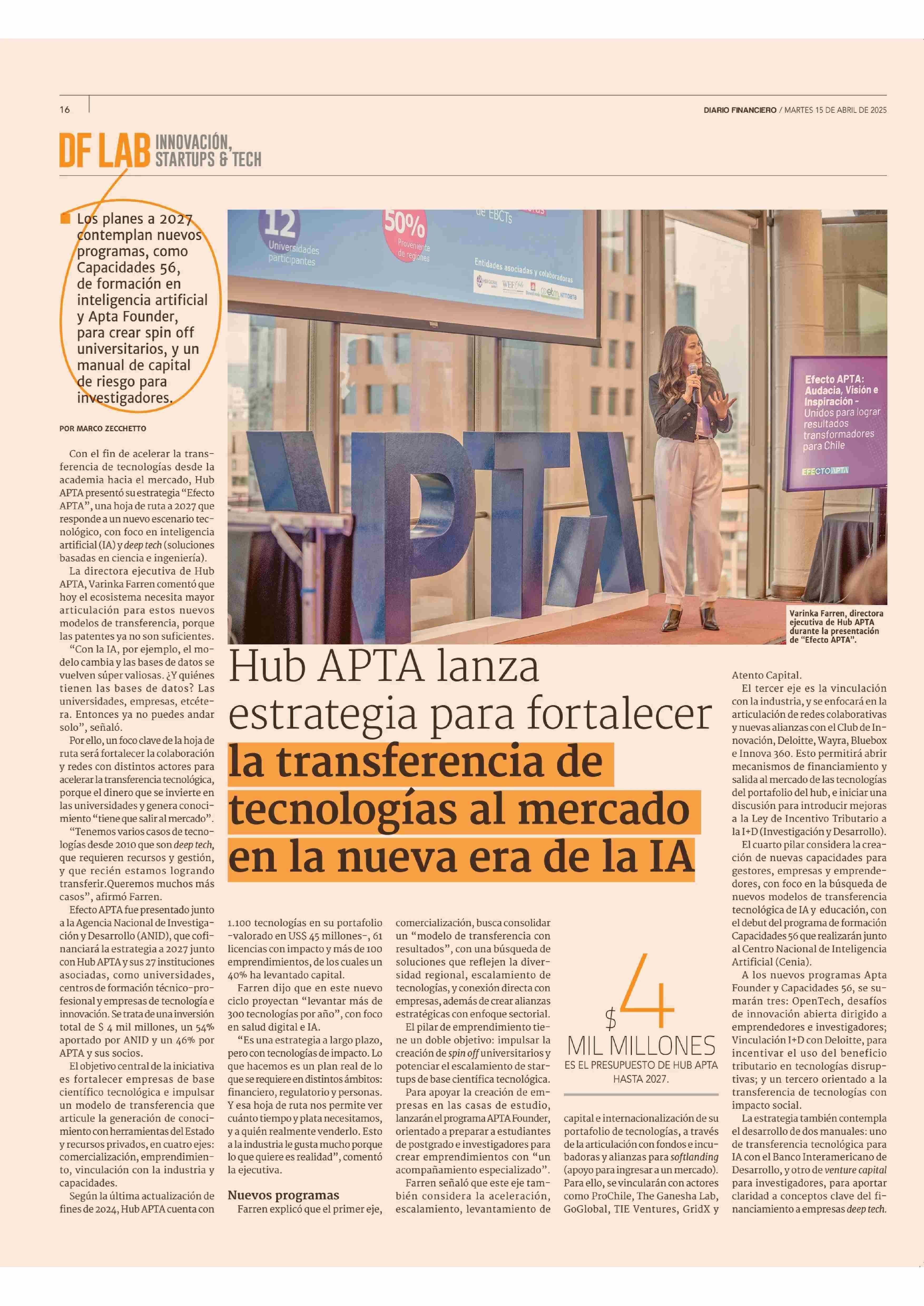 Título: Hub APTA lanza estrategia para fortalecer la transferencia de tecnologías al mercado en la nueva era de la IA