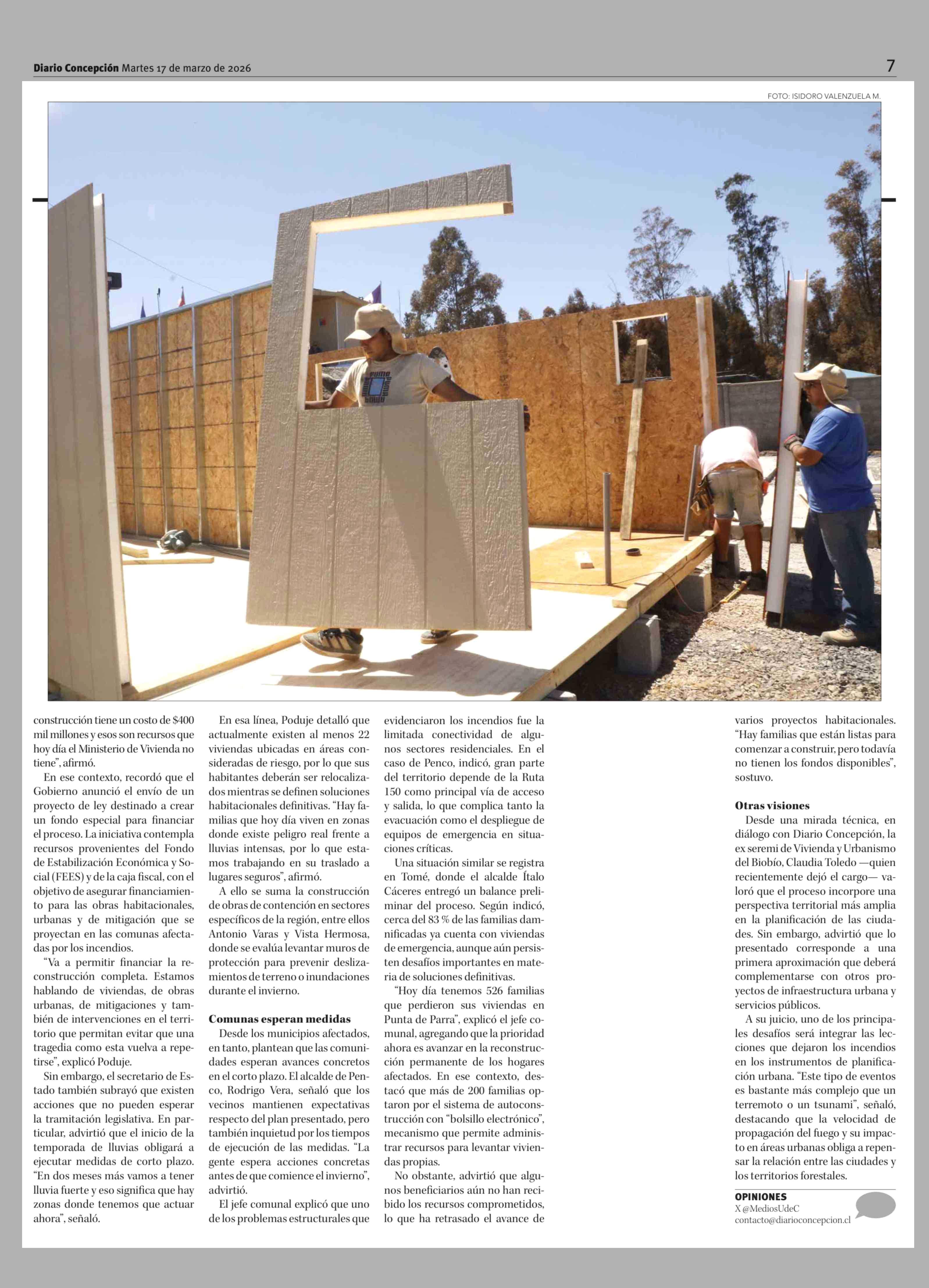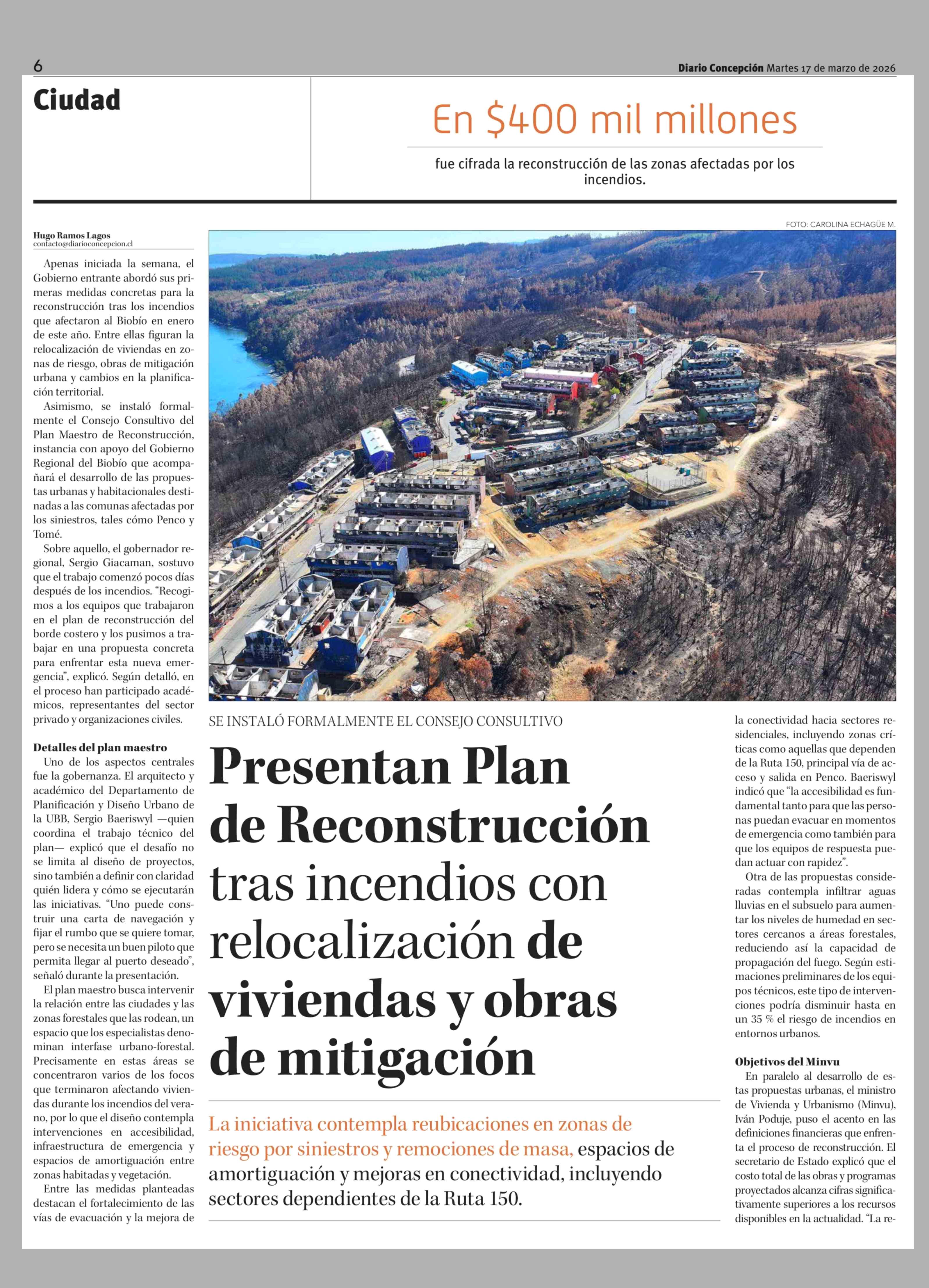 Presentan Plan de Reconstrucción tras incendios con relocalización de viviendas y obras de mitigación 17-03-2026 Diario Concepción |