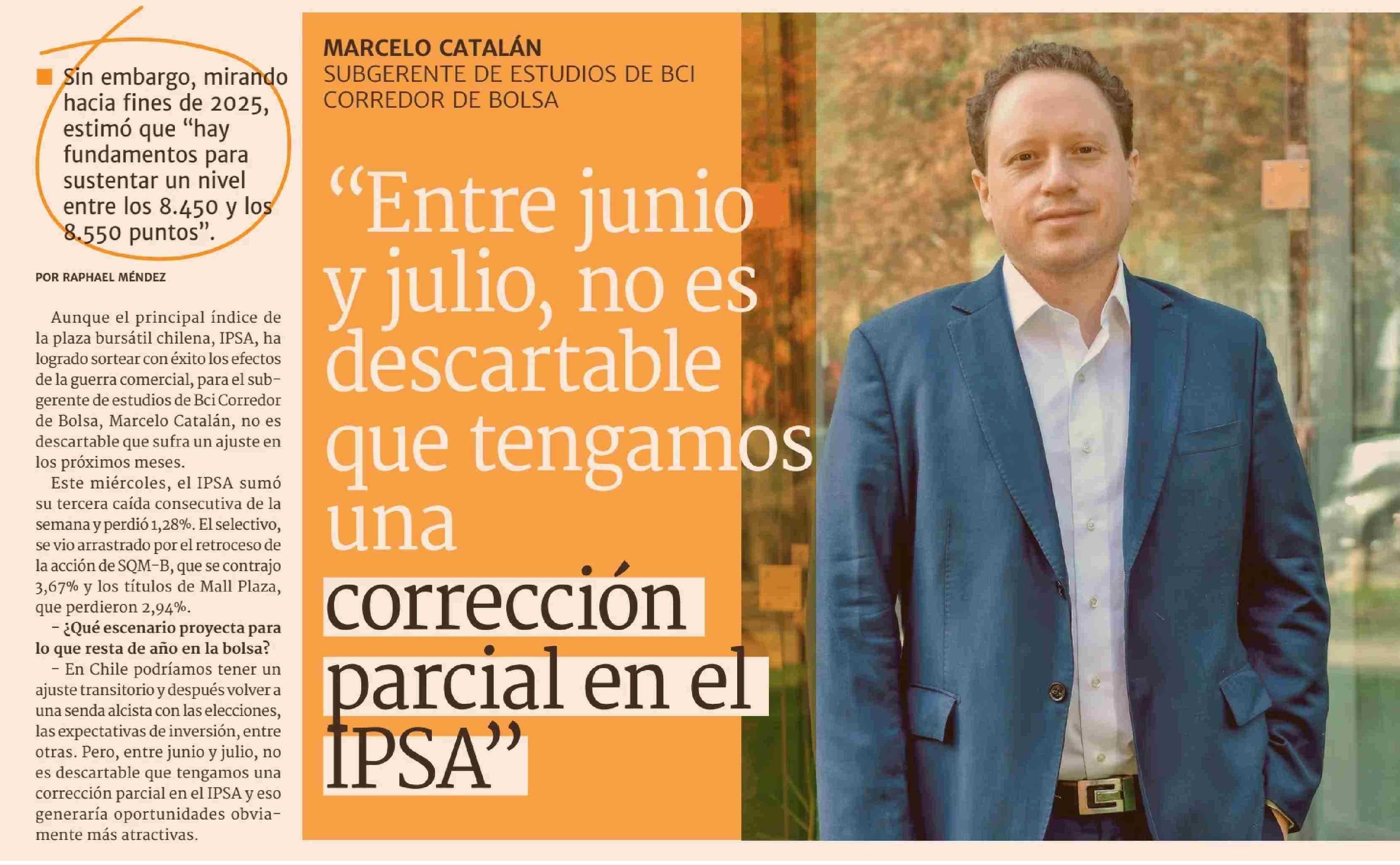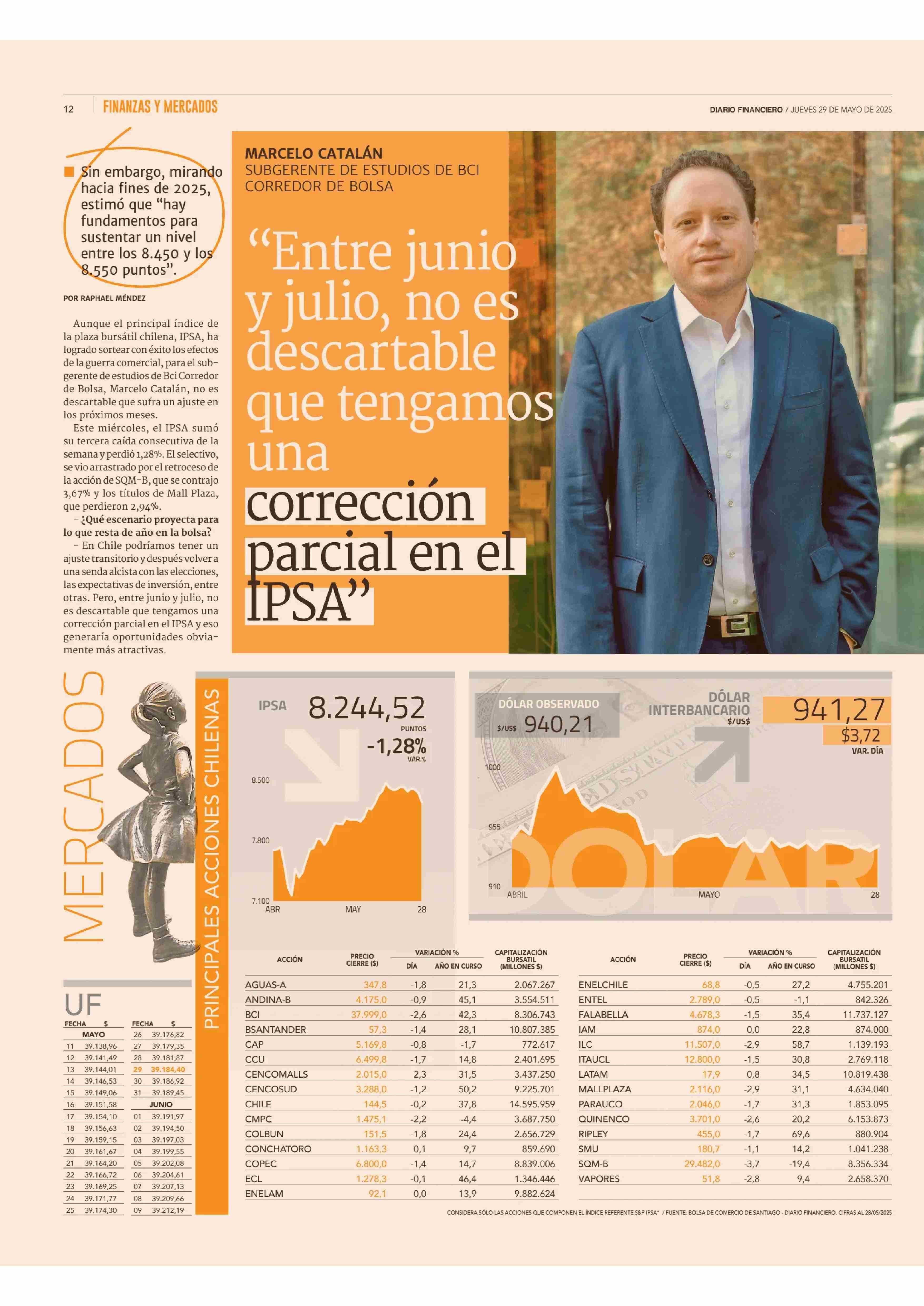 “Entre junio y julio, no es descartable que tengamos una corrección parcial en el IPSA” 29-05-2025 Diario Financiero |
