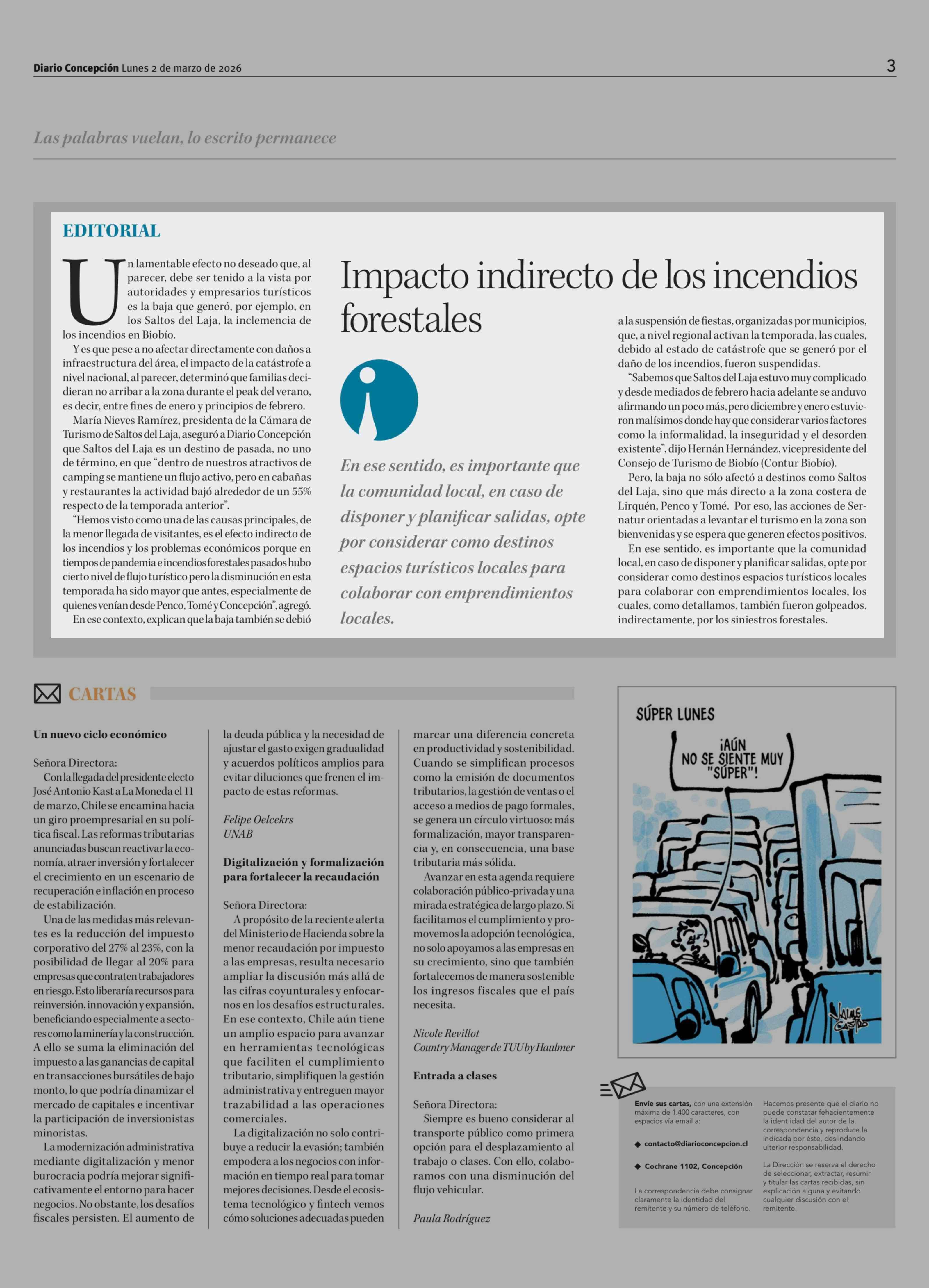 Editorial: Impacto indirecto de los incendios forestales 02-03-2026 Diario Concepción |