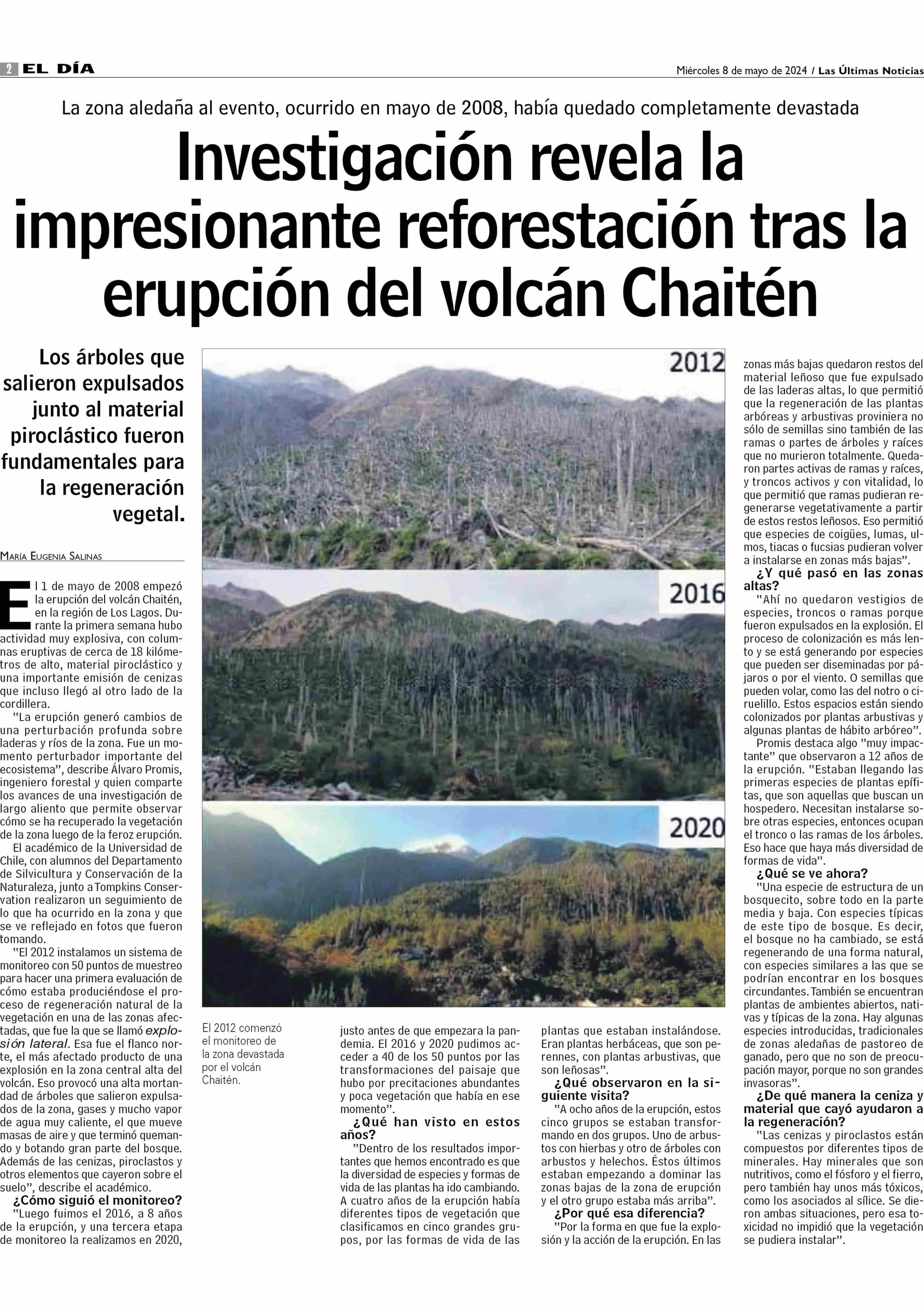 Investigación revela la impresionante reforestación tras la erupción del volcán Chaitén 08-05-2024 Las Últimas Noticias |