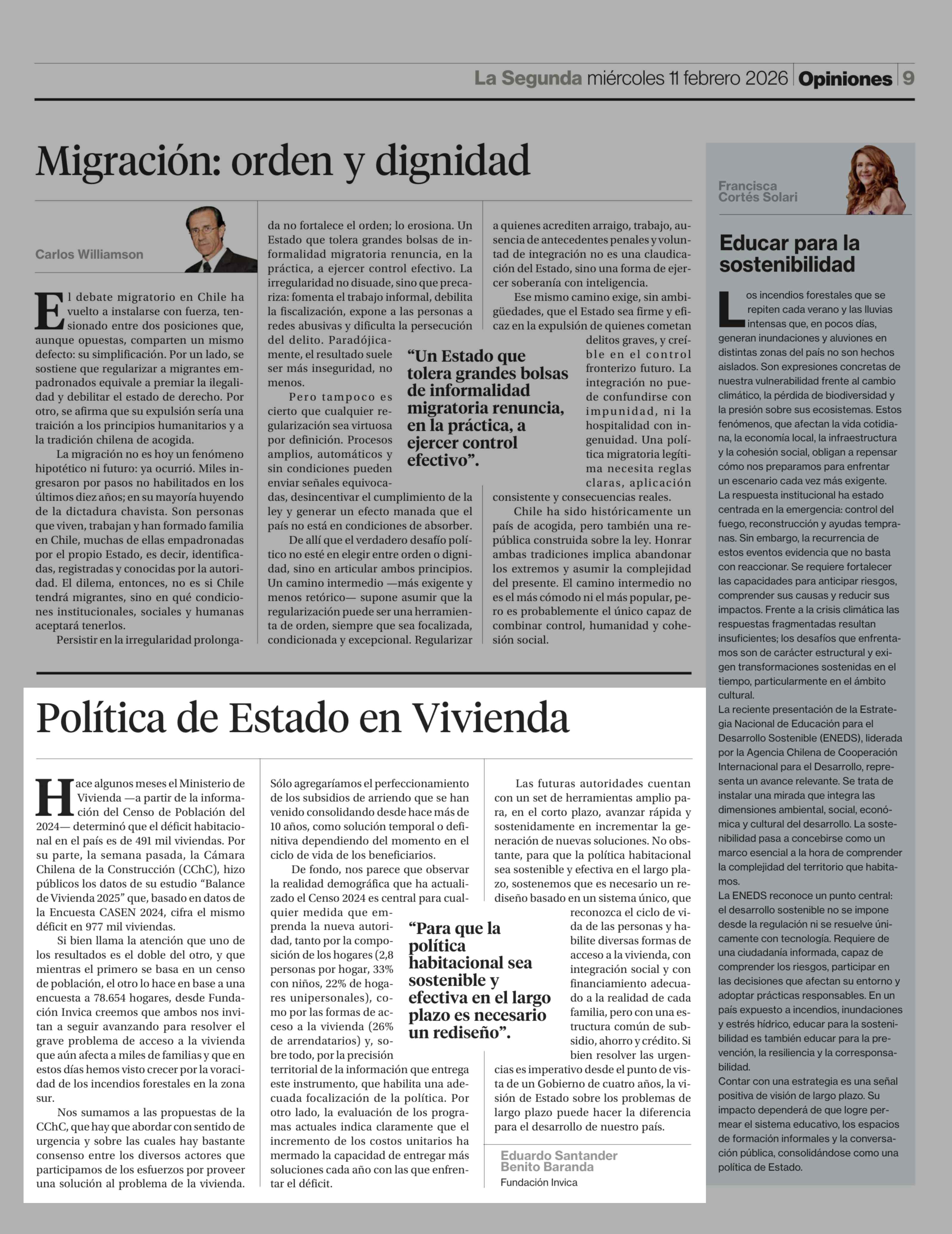Columnas de Opinión: Política de Estado en Vivienda 11-02-2026 La Segunda |
