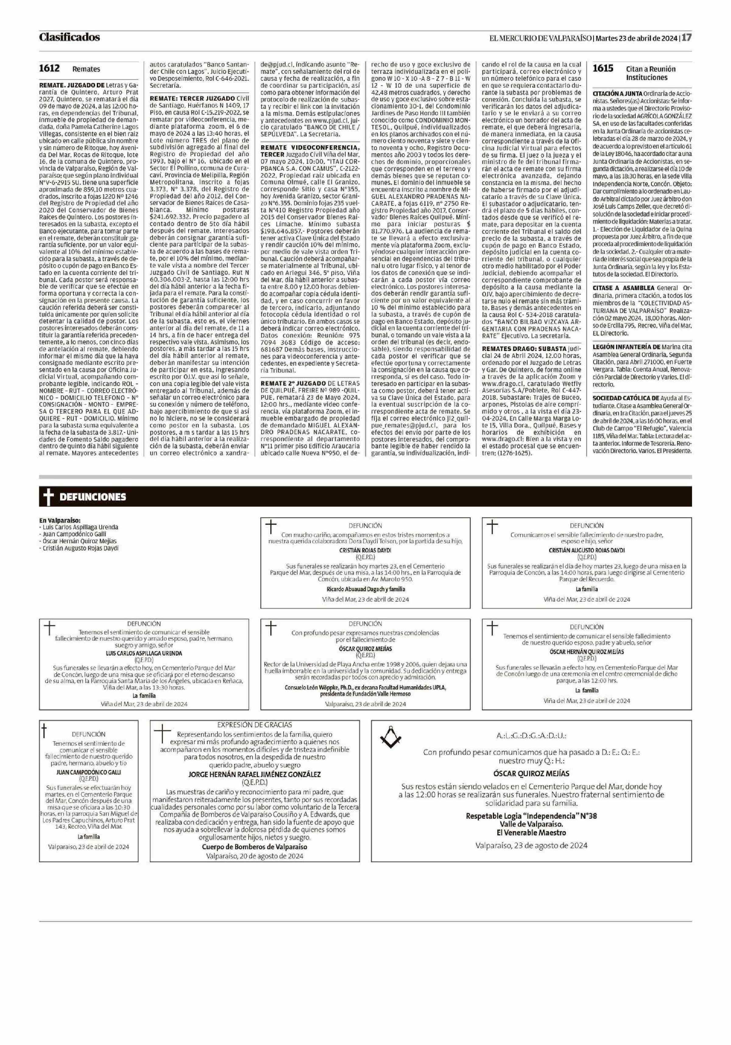 EXTRACTOS: Judiciales 23-04-2024 El Mercurio de Valparaíso |