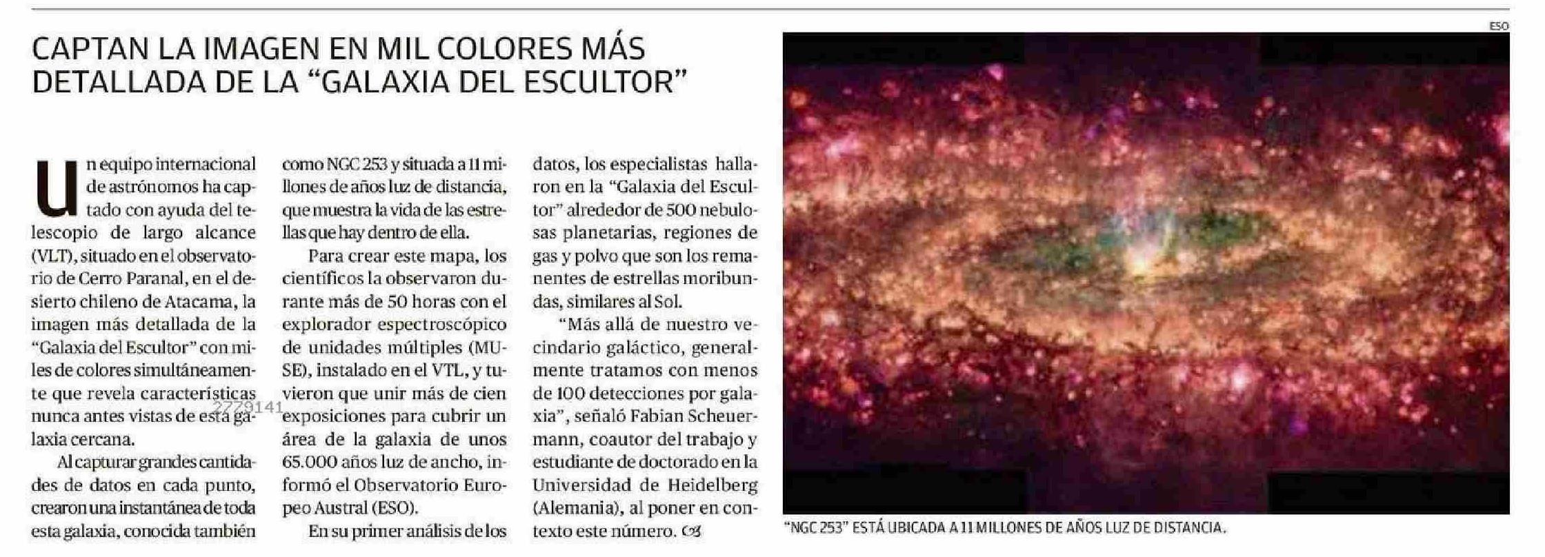 | Título: | CAPTAN LA IMAGEN EN MIL COLORES MÁS DETALLADA DE LA "GALAXIA DEL ESCULTOR" |