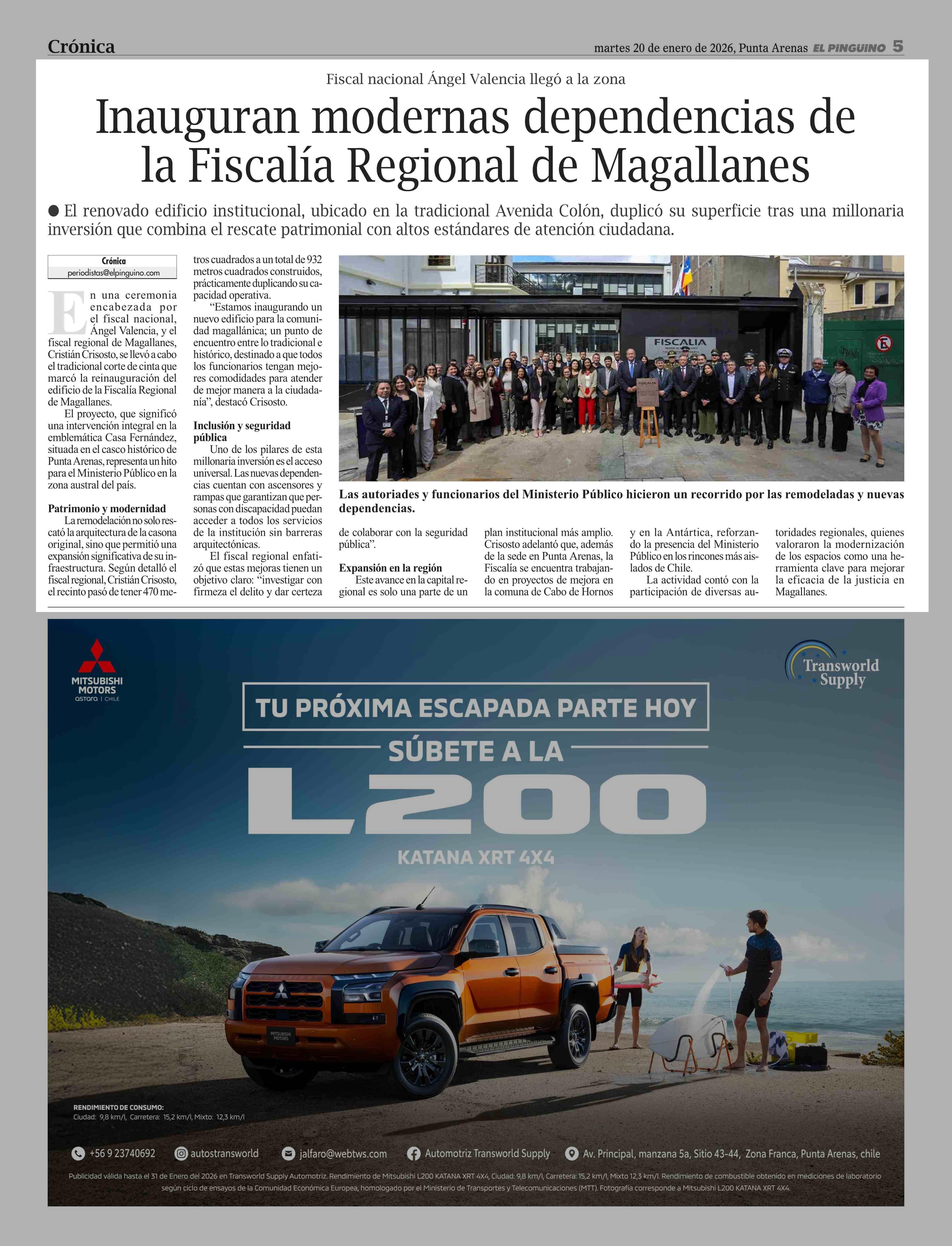 Inauguran modernas dependencias de la Fiscalía Regional de Magallanes 20-01-2026 El Pingüino |