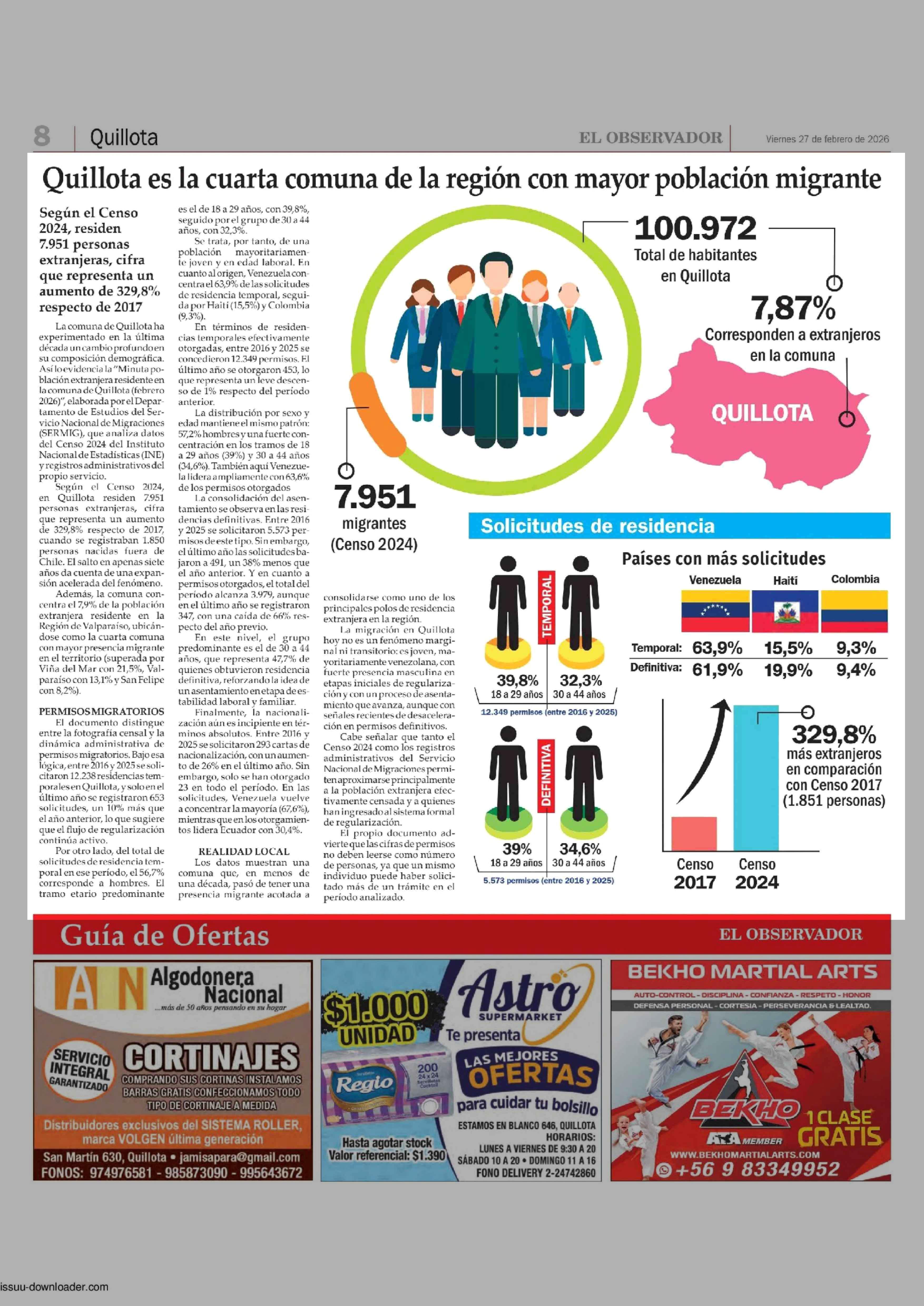 Título: Quillota es la cuarta comuna de la región con mayor población migrante
