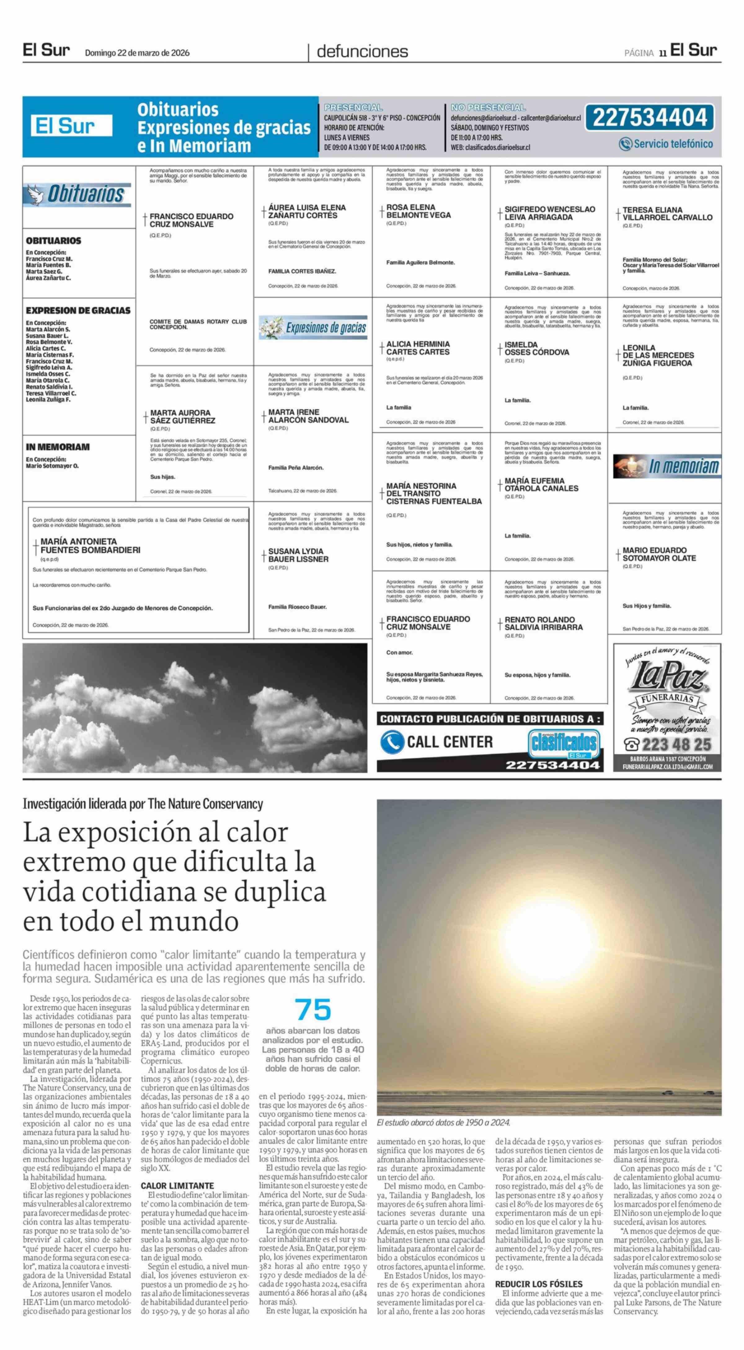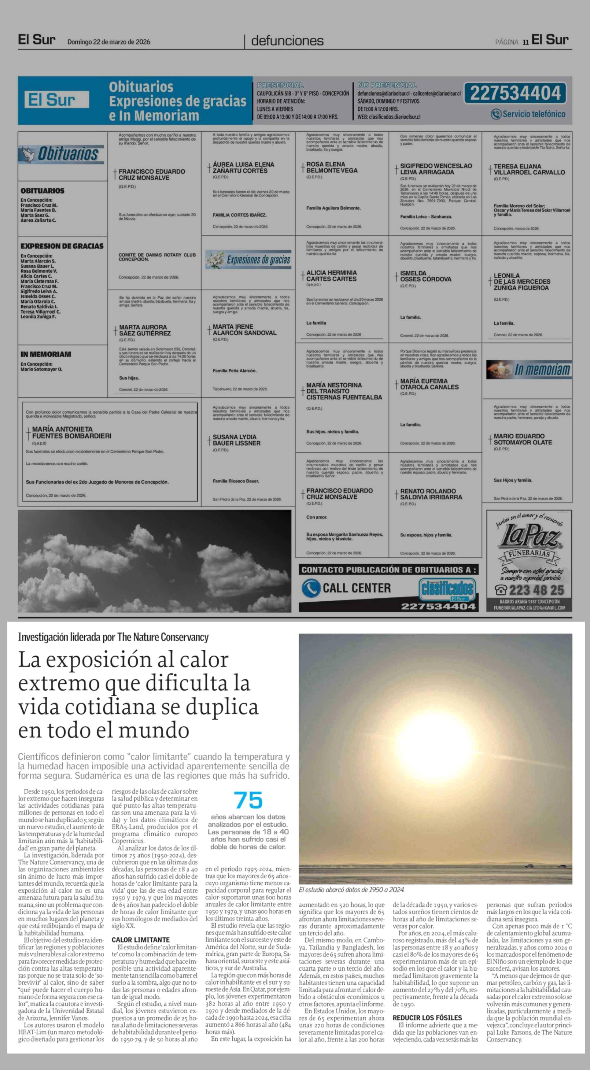 La exposición al calor extremo que dificulta la vida cotidiana se duplica en todo el mundo 22-03-2026 El Sur |
